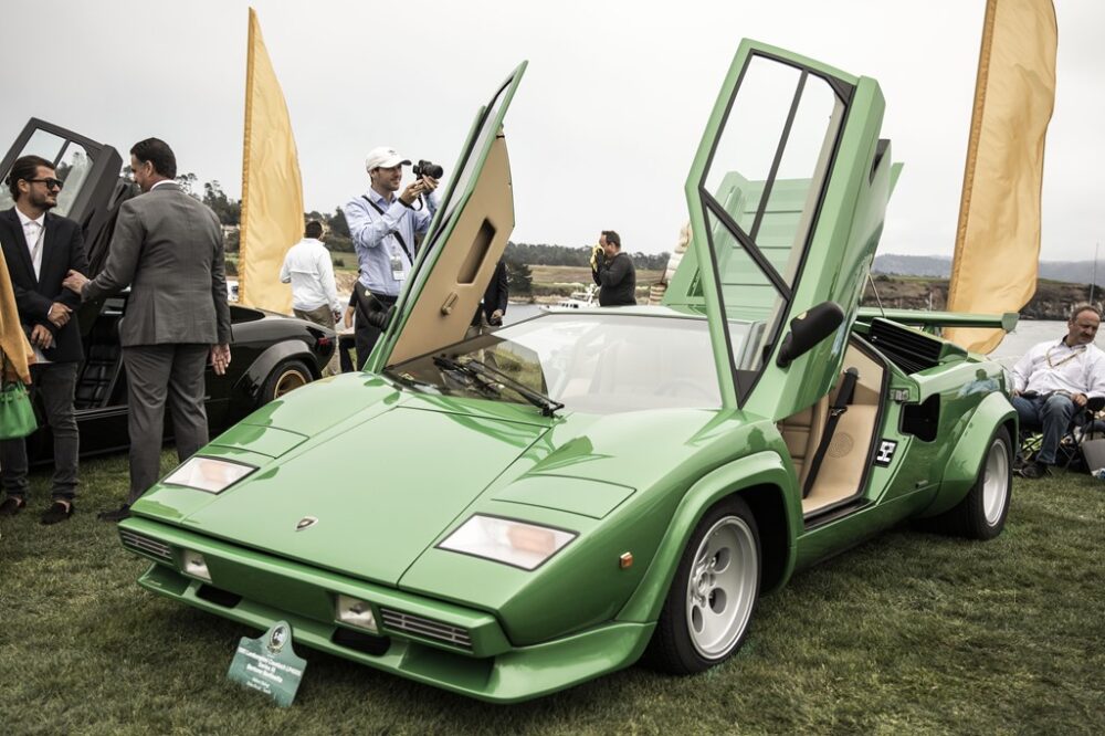 戦前のクラシックカーが多数並んでいる会場では逆に新鮮に映る1981年式LamborghiniカウンタックLP400S。初期モデルからエアロパーツなどが追加され、より戦闘的なルックスになる。