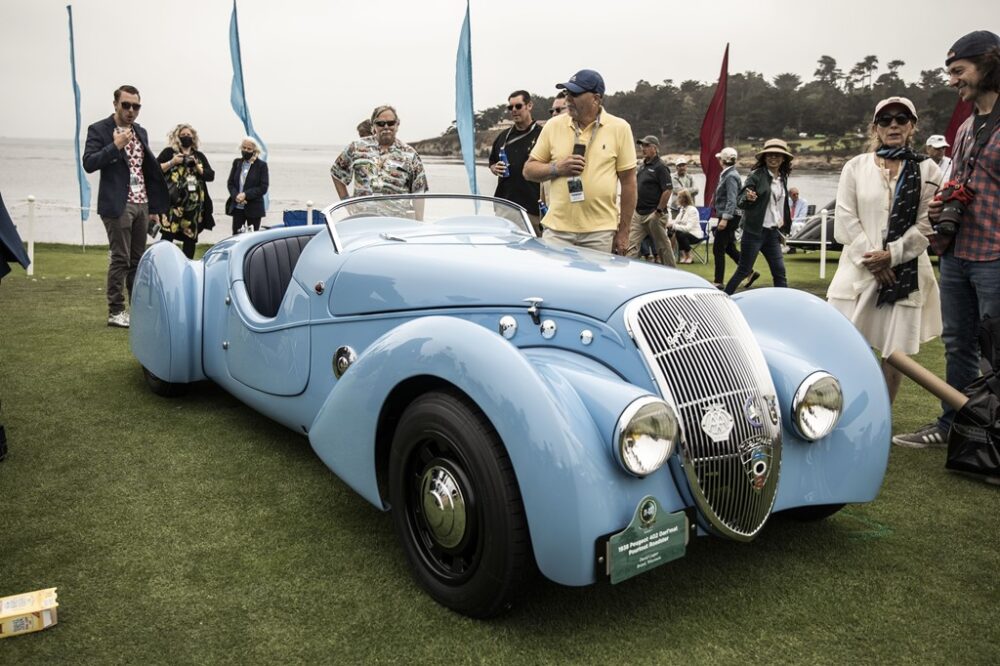 1938年式Peugeot402 ダルマット・プルトアウト・ロードスターは美しいストリームラインを描く曲線が職人たちのハンドメイドでなければ表現できない作り込みを感じる。