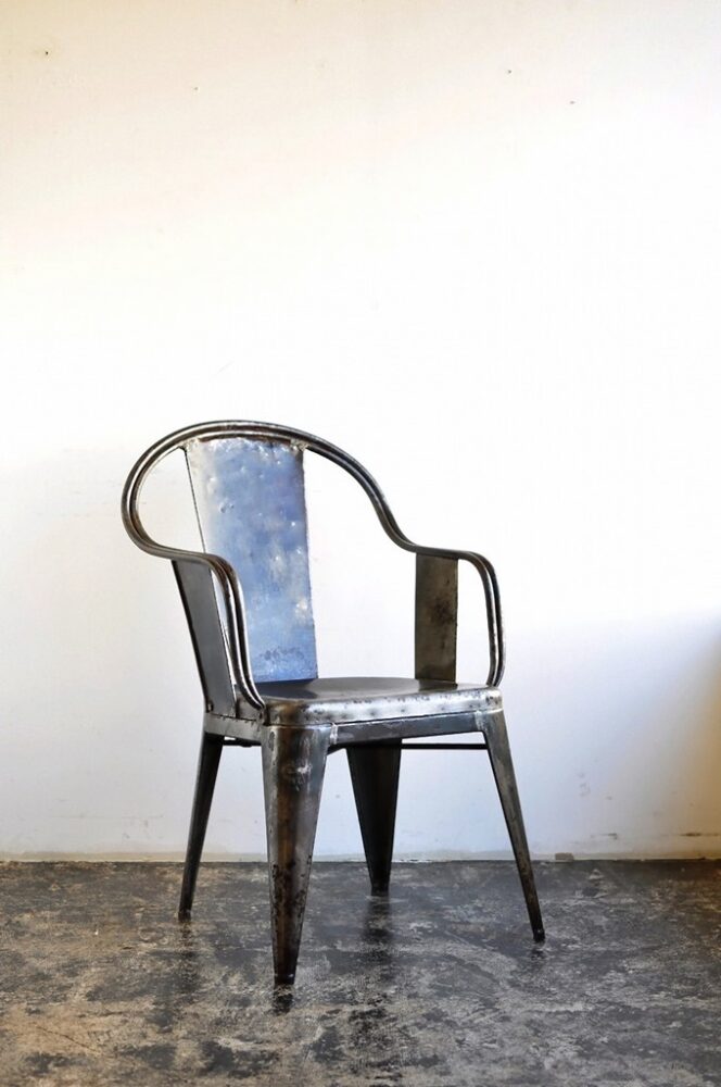 フランスのTOLIXを立ち上げたデザイナー、グザビエ・ポシャールはメタルという素材を実用的な家具へとデザインした立役者の1人。スチールに亜鉛メッキを施したチェアはオフィスや病院、それにカフェなどで幅広く使われ、インダストリアルファニチャーの歴史のなかで、今も確固たる存在感を放っている。そのヴィンテージともなればさらに魅力は倍増する。