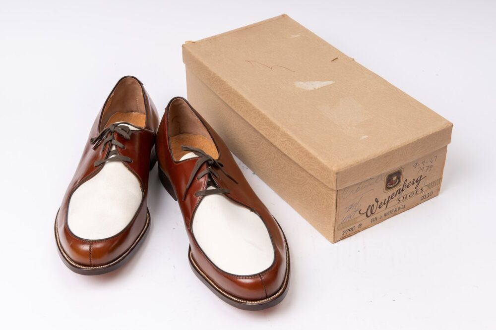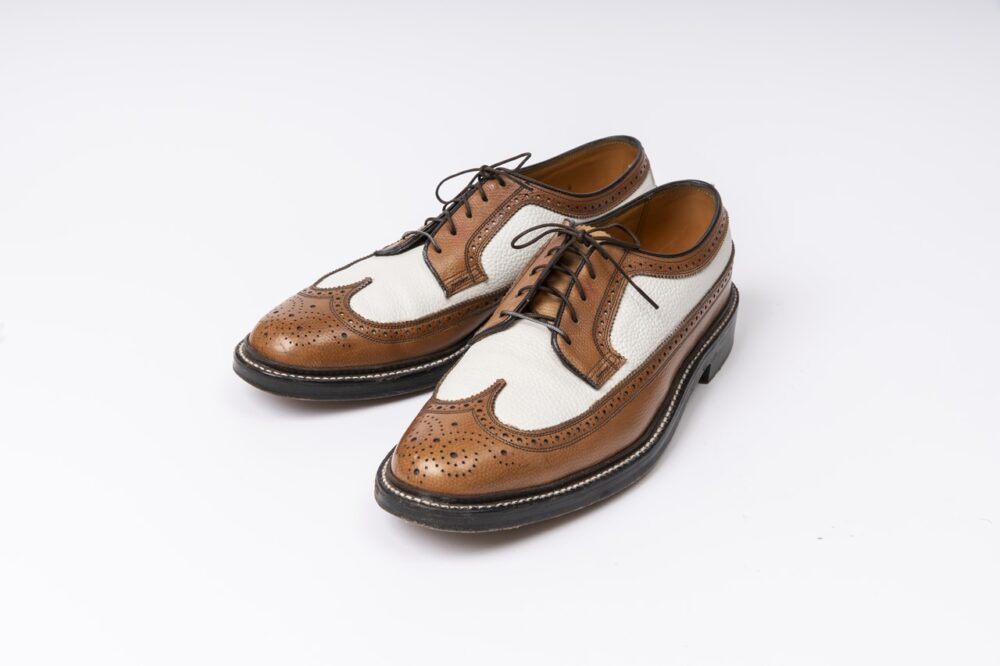 ブランドを代表するモデル、ケンムーアは1960年に発売。ロングウィングチップの他に、プレーントゥ、Uチップが存在。白×ゴールデンハーベストというカラーリングだ。