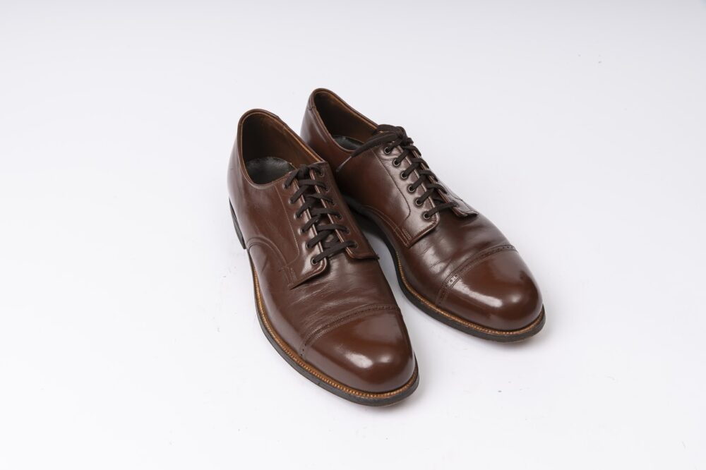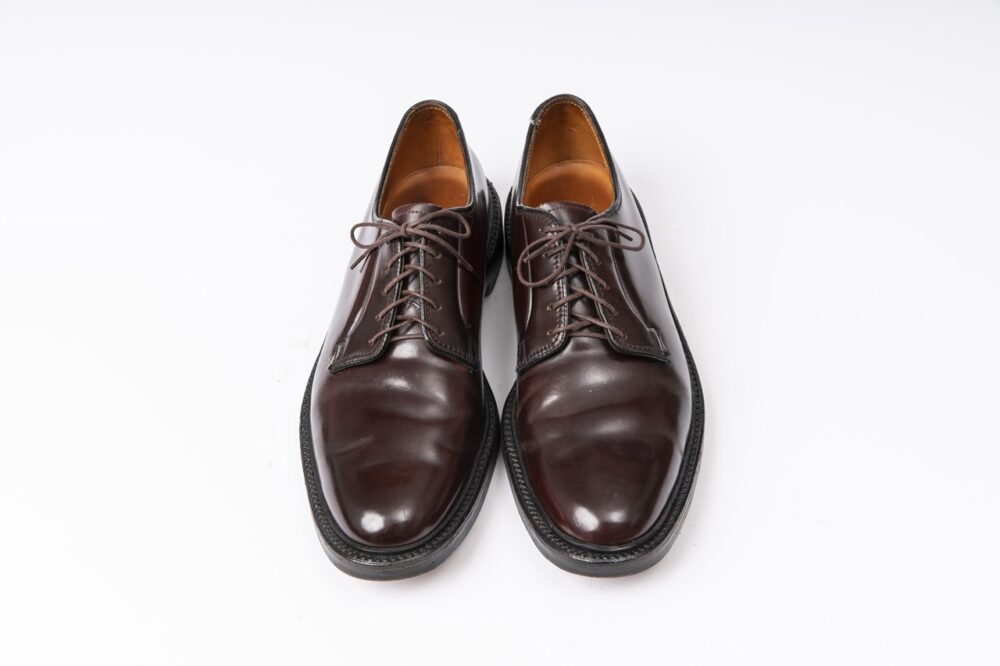 ガンボートと呼ばれるスタイルが特徴。ウイングチップのイメージが強いがプレーントゥも存在。内側の印字から1971年製と推測。コードバンを使用。