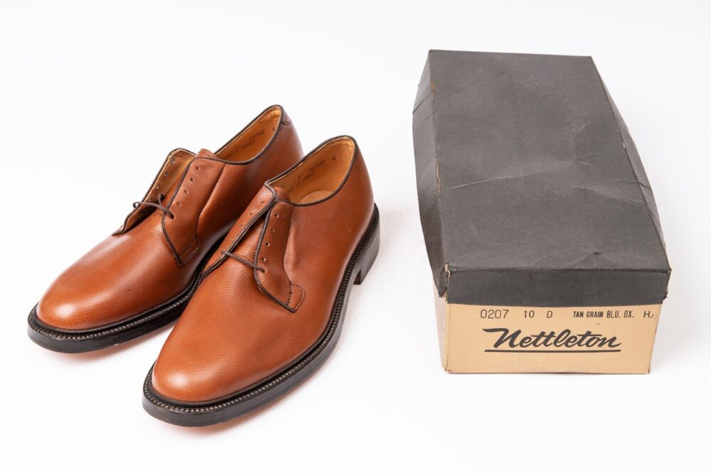 アメリカの紳士靴らしい重厚感のあるダブルソールのガンボートスタイル。シボの入ったスコッチグレインレザーもアメリカらしい。箱付きのデッドストックである。