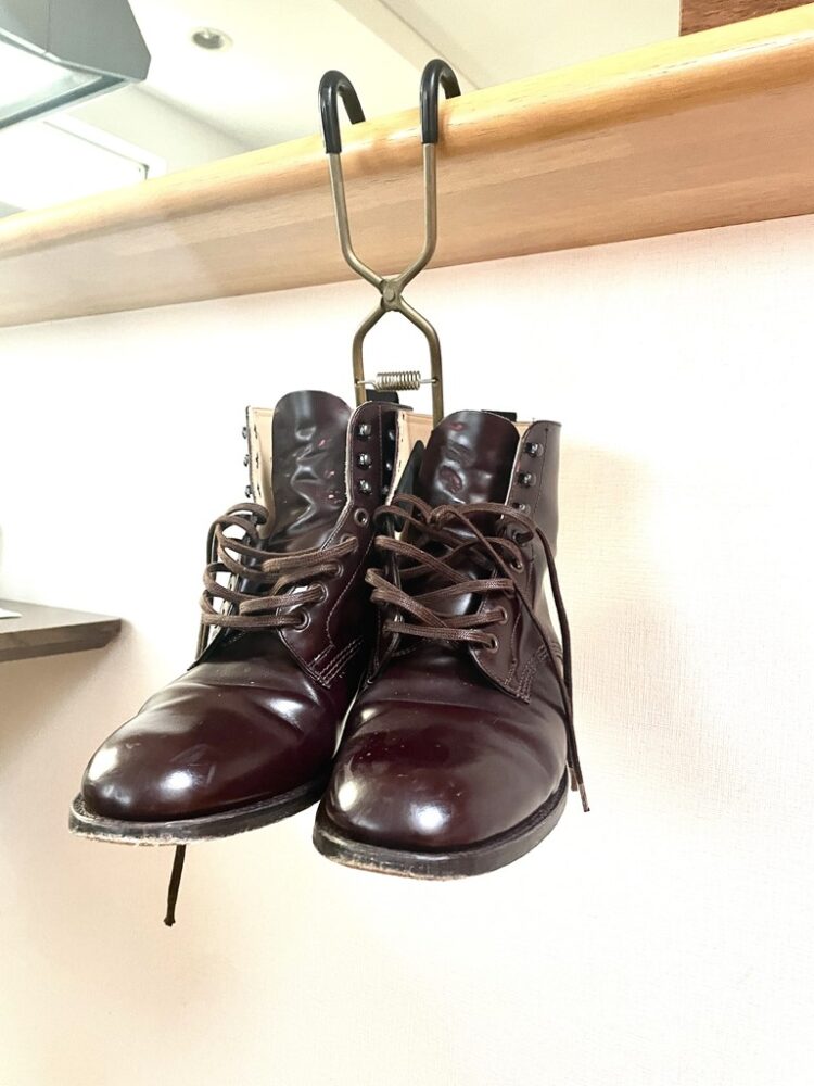 高級な靴はミッドソールがあり、ここに湿気が溜まりやすいので、この時はシューツリーもすぐには入れないほうが良いだろう。ブラッシングの後は、自然乾燥。私は靴用のハンガーを用いるようにしている。
