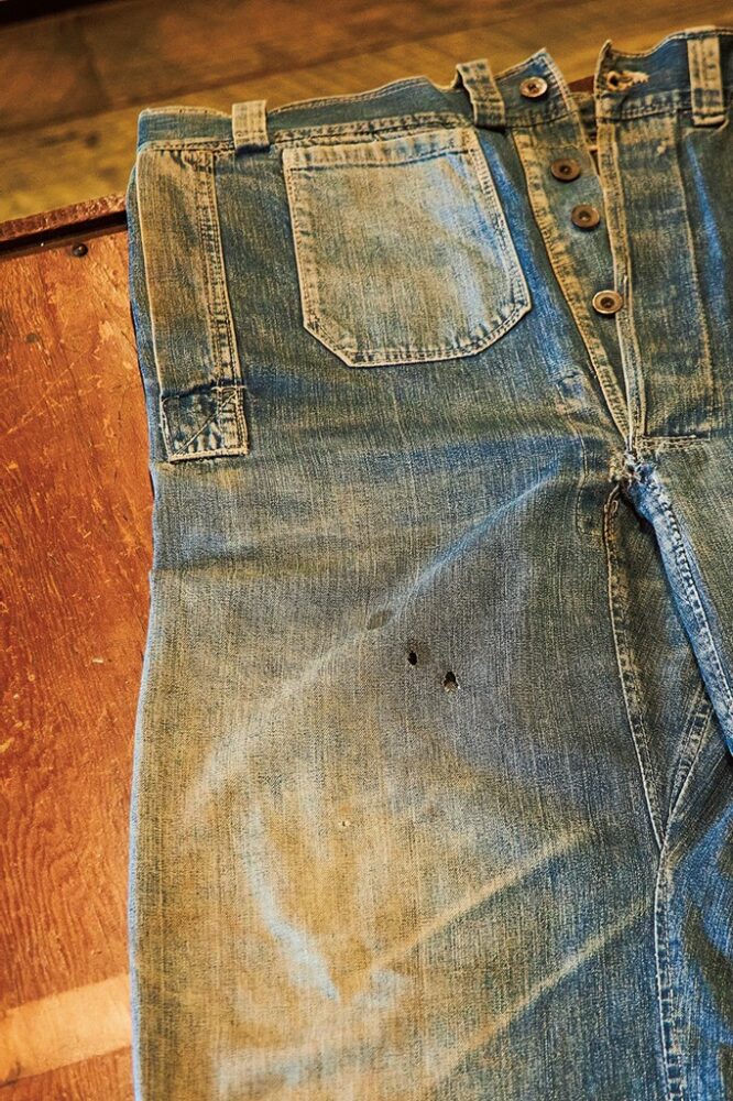 「大好きなヴィンテージワークウエアブランドの一つ」とジョンが熱弁するのはSWEET-ORR。1910年代の5ポケットデニムパンツ。ニューヨーク発のブランドをあえてチョイスするあたり、東海岸で生まれ育った男のこだわりを感じる。この個体はサイズが小さく、「自分が着られるサイズ」をジョンが熱望するアイテムである。