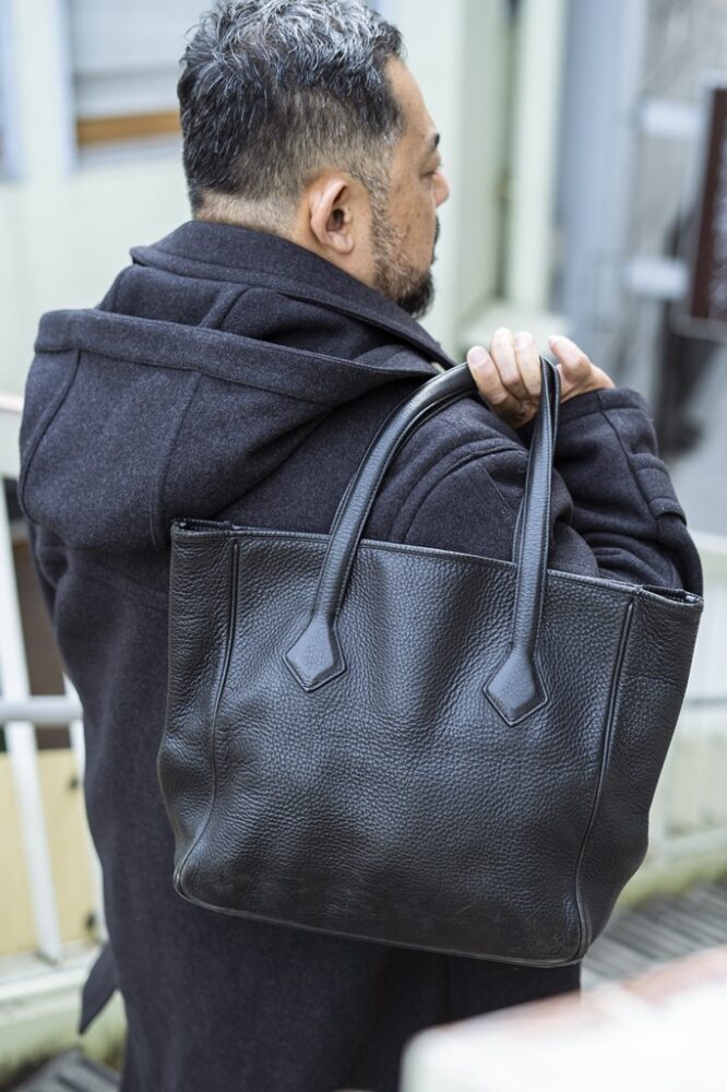 初めてパリに行った97年頃。サントノーレの本店で購入したダッフルコートと若かりしころ毎日のように持ち歩いていたトートバッグ。「見た目の重量感に反し、袖を通せば軽く、もちろん肌触りの良い究極のダッフルコートです。バッグは、ビーントートを使うがごとくヘビーユースしていました。どちらも25年以上も使い続けたわりにヘタっていないのは、作りの良さが理解できますよね」