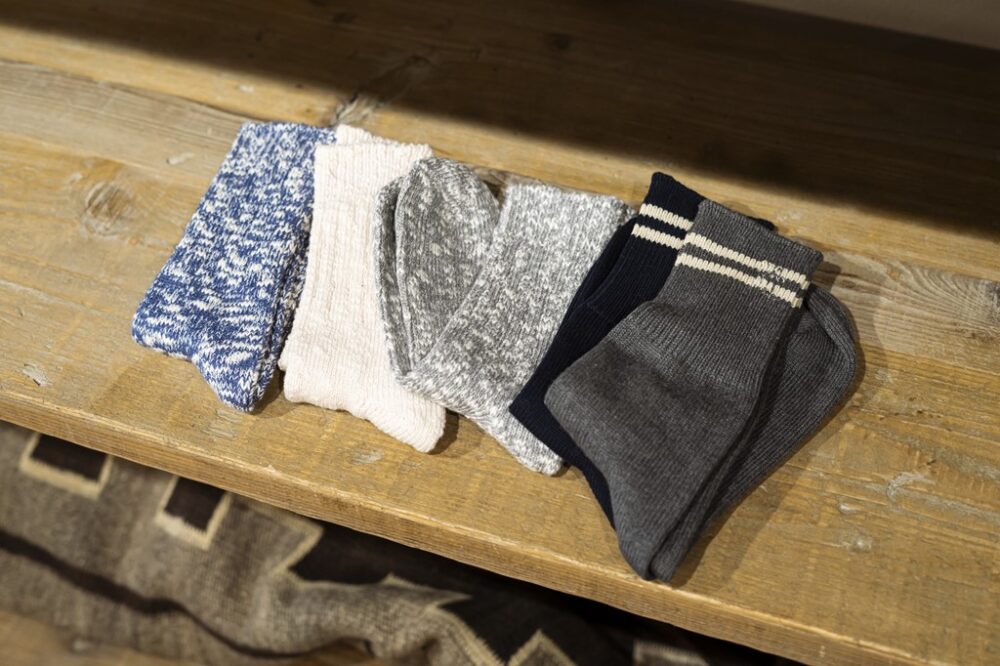肌触りが良く、ヘタレにくいことから、リピートし続けているフルカウントのソックス。靴下の産地で有名な奈良県の工場で、旧いダブルシリンダーの機械で編まれたもの。