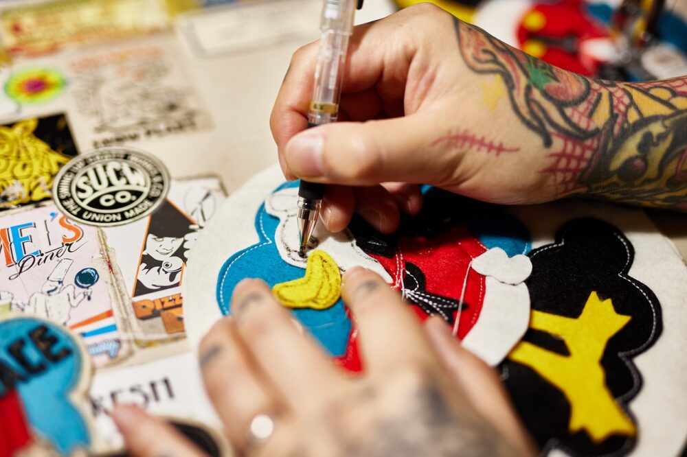 自身のショップ『SNOW PLANT』だけでなく、他店の記念ワッペンも限定で手がけてきた。