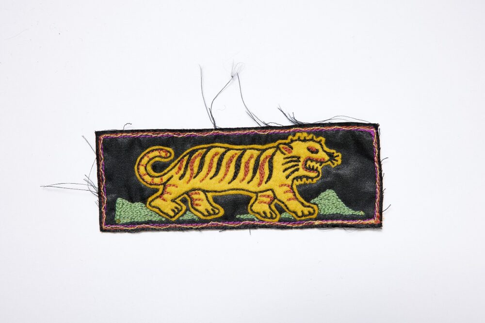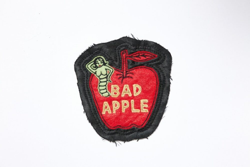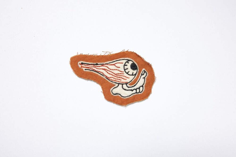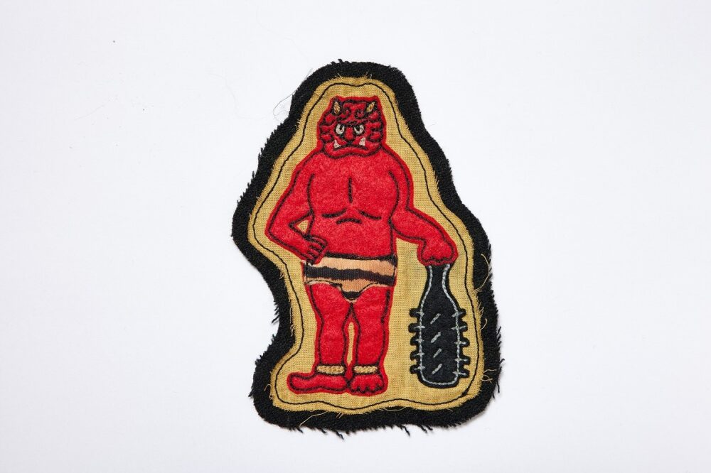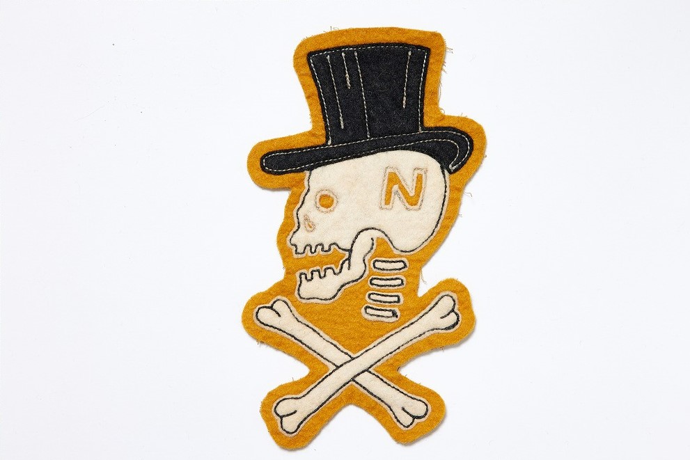 右側がコーヒー染めして仕上げたサンプル。このワッペンは今季の新作で「NNN-004」のB型。¥10,780_