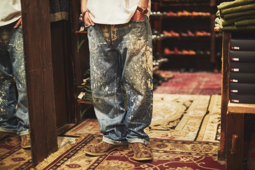 言わずもがなヴィンテージデニムの王道、LEVI’S 501XXは激しいペンキ痕がアイキャッチとなる1本。「アメリカ西海岸のペンキ屋の倉庫から掘り出したこれぞ、リアルクロージングなダブルエックスです。特に暖かくなってきたタイミングでヘンリーTシャツと合わせて穿きます」