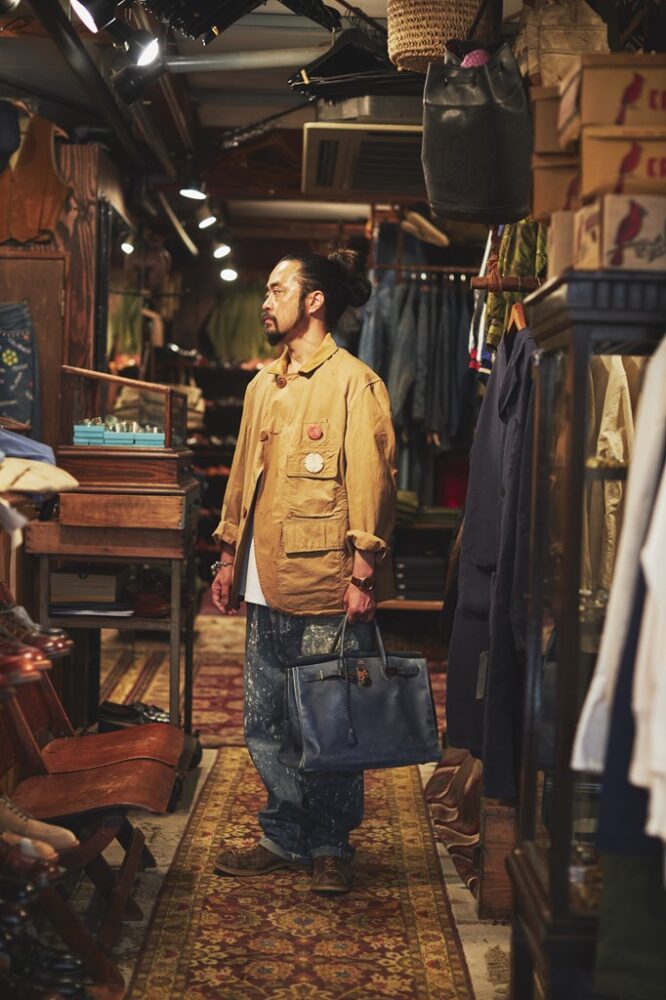 「ボクのモノ選び基準は服も小物も味のあるもの、ヴィンテージならではの存在感があるものが圧倒的に多いです。例えば、ワークウエアにペンキが飛んでいるだけで、その服に出逢うまでの背景が無限に想像でき、楽しくなります。何よりもその物への愛着も湧きやすくなるんです。基本的に好きなアイテムは旧いヴィンテージが多いので、使い難い、合わせ難いものばかり。それらをどう料理するかが、ボクにとっては楽しみのひとつなんです」