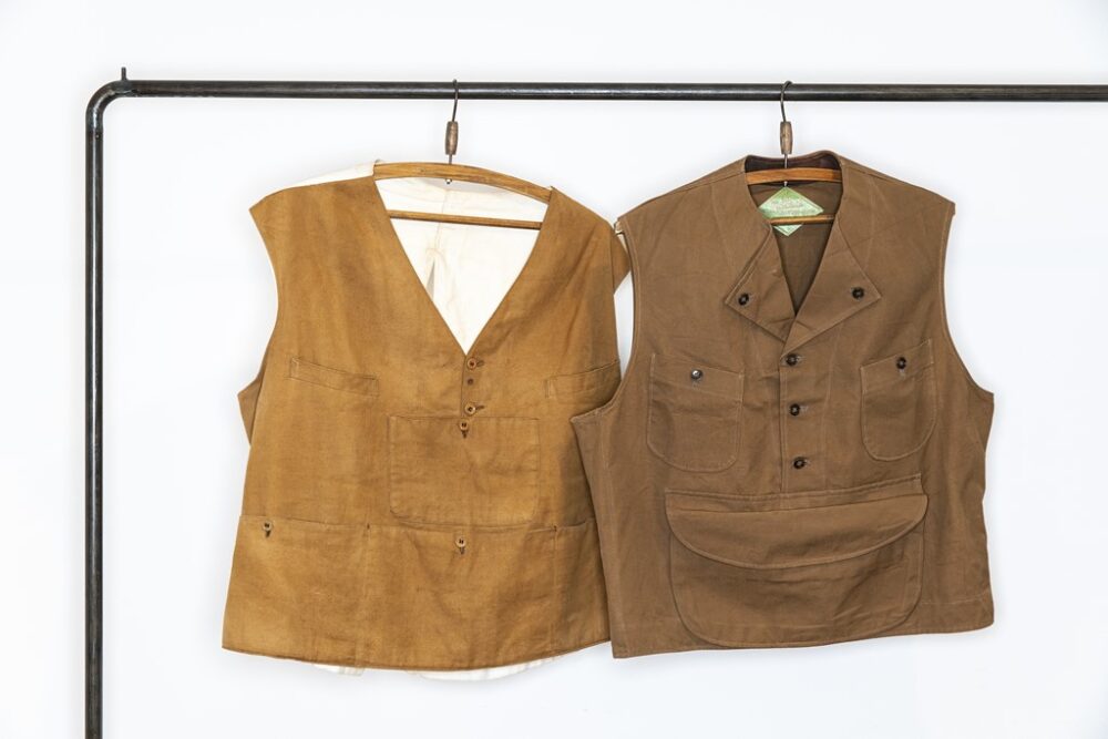 フレンチ好きの田中氏が、近年掘り出しているのが、ヨーロッパのハンティングベスト。プルオーバーに限定して探しており、ともに1920~30年代のスペシャルな代物である。