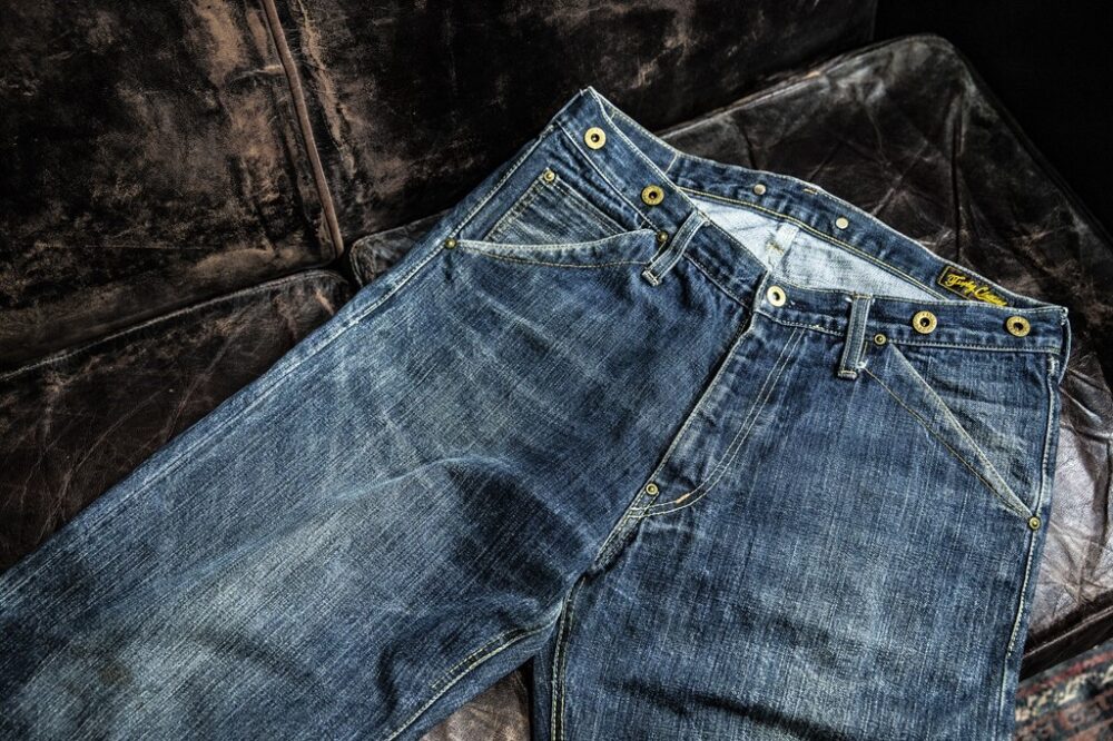 パターン、裁断、縫製をすべて江川氏が行った1605プロトタイプ。「今もブランドの定番となっている1605ダートデニムのファーストモデルであり、原点。現在もアイコンとなっているボックスロゴ Tと1605でブランドがスタート」