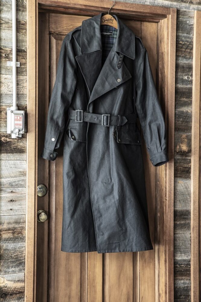 イギリス陸軍のバイク部隊用として1940年代に軍が制式採用していたディスパッチコートを細部にわたり忠実に復刻。「ヨーロッパに精通するAdjustable CostumeとのWネームで製作したもの。本来、このモデルには存在しないブラックで作ることで、ファッション性の高い1着に」