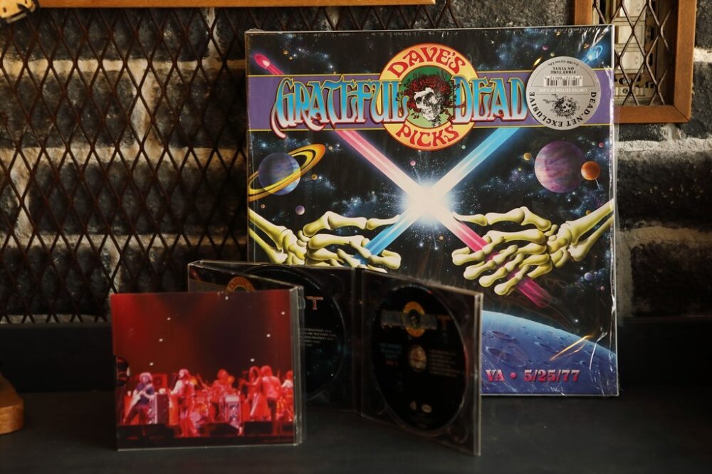憧れの存在であるグレイトフル・デッドの3枚組CDライブアルバム『Dave’s Picks Volume1』とレコード。1977年のライブツアーを収録したもので、プレミア化している。