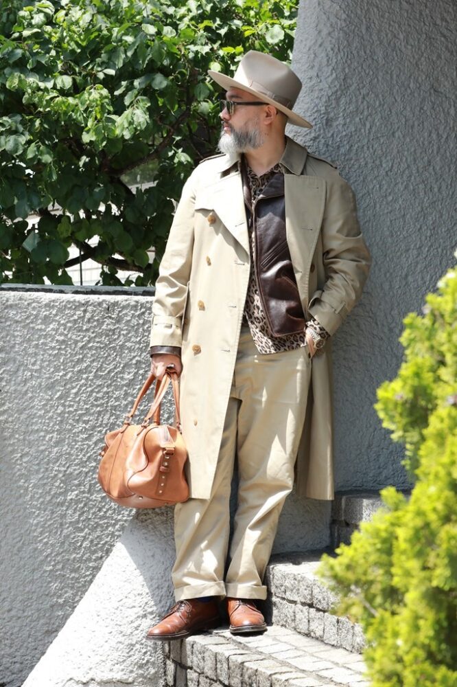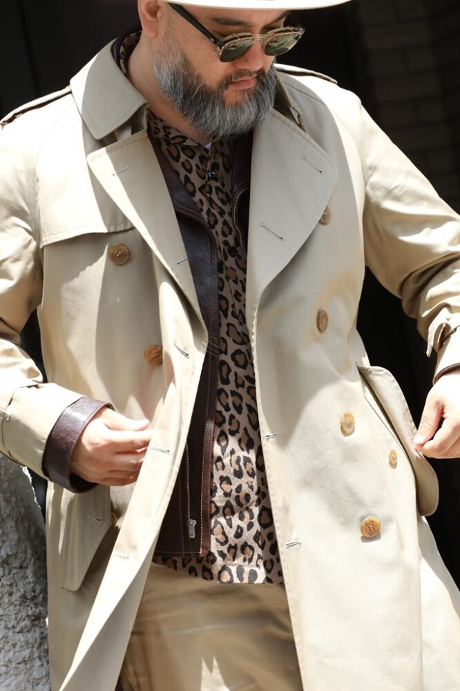 1970 年代後半のBurberry Prorsumのトレンチコートは、パリのヴィンテージショップで購入。「ルパン三世の銭形警部が設定上、着ているコートで、1度は着てみたくて12年ほど前に買いました」