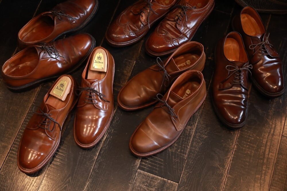 他のレザーの種類まで許してしまうと好き過ぎて、収拾がつかなくなりそうなのでALDENはコードバンしか買わないと決めているのだとか。基本はベージュ系統の色が多い。