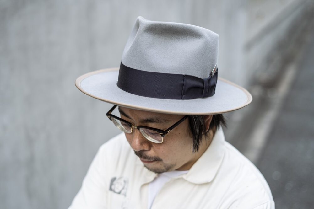 1940~1950年代のヴィンテージを忠実に復刻したSTETSONIANとRAY BANのクラブマスター。「オープンクラウンで、かつハイクラウン、ハイブリムはアメリカのみぞできる技。RAY BANはメガネとして」