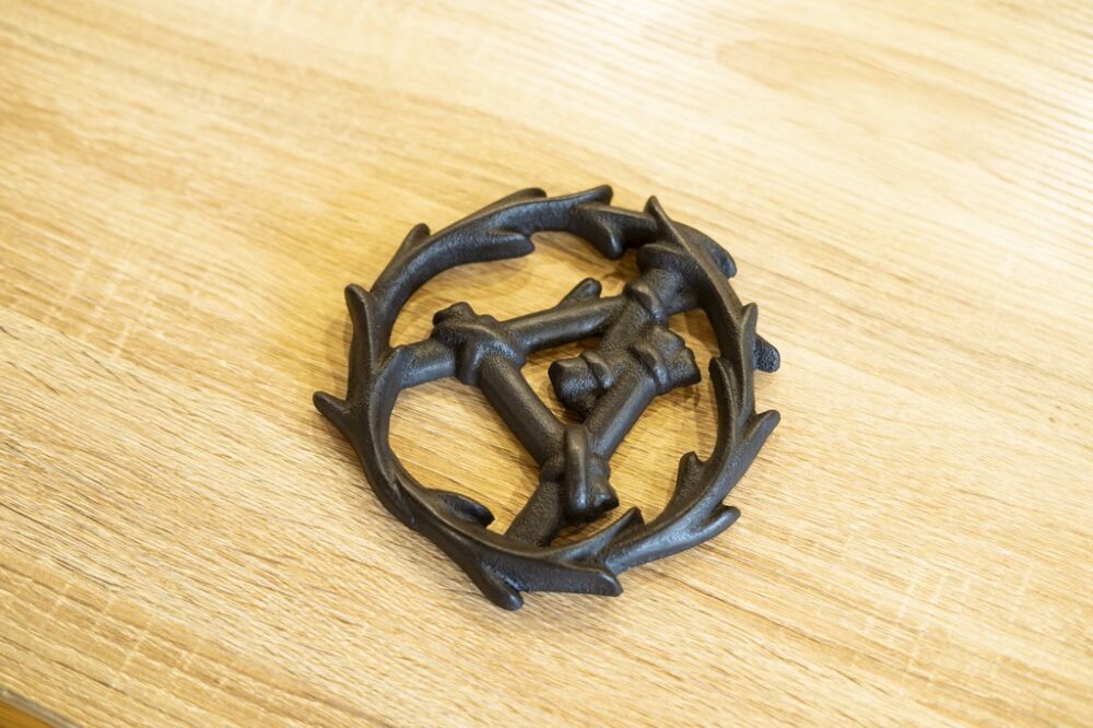 友人らとキャンプをはじめとするアウトドア遊びにハマっているという寺内氏。ANARCHO MOUNTAINE ERINGから販売された鋳鉄製の鍋敷きはデザインにヤられたという。