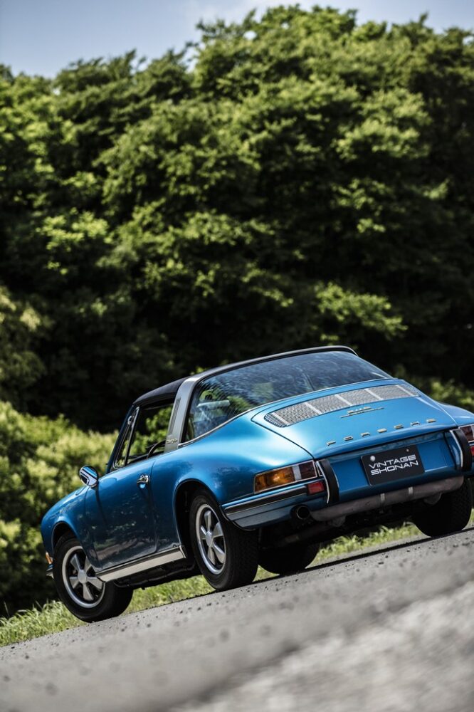 着脱式ルーフトップが装備された911E。タルガの由来は、当時、イタリアで開催されていたタルガ・フローリオ耐久レースに由来し、Porscheはこの大会で5連覇という偉業を成し遂げていたことも、ネーミングに影響を与えていたはず。フロントにはフォグランプが付けられ、ミニマルなスタイルでありながらも、ややワイルドな印象を受けるフェイスとスタイリッシュなテールが特徴。