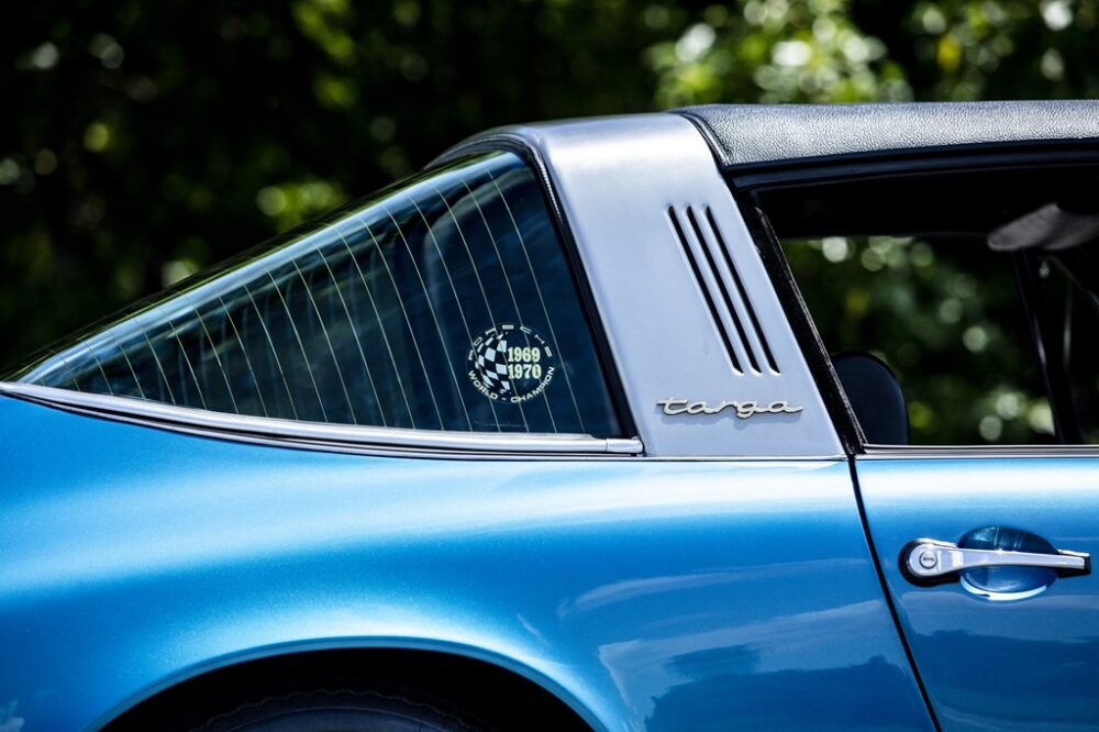 1965年にデビューしたPorsche911シリーズ。当初よりオープンカーモデルを検討していたが、投入予定だったアメリカで、横転時の乗員の安全性が問題視され、着脱式ソフトトップに固定式ロールオーバー・バーを装備することで、安全性の問題を払拭したセーフティカブリオレ、タルガが誕生したのは1967年のこと。初期のタルガは、ソフトトップのみだったが、1969年には、美しいカーブを描く湾曲したリアウィンドーが装備される。