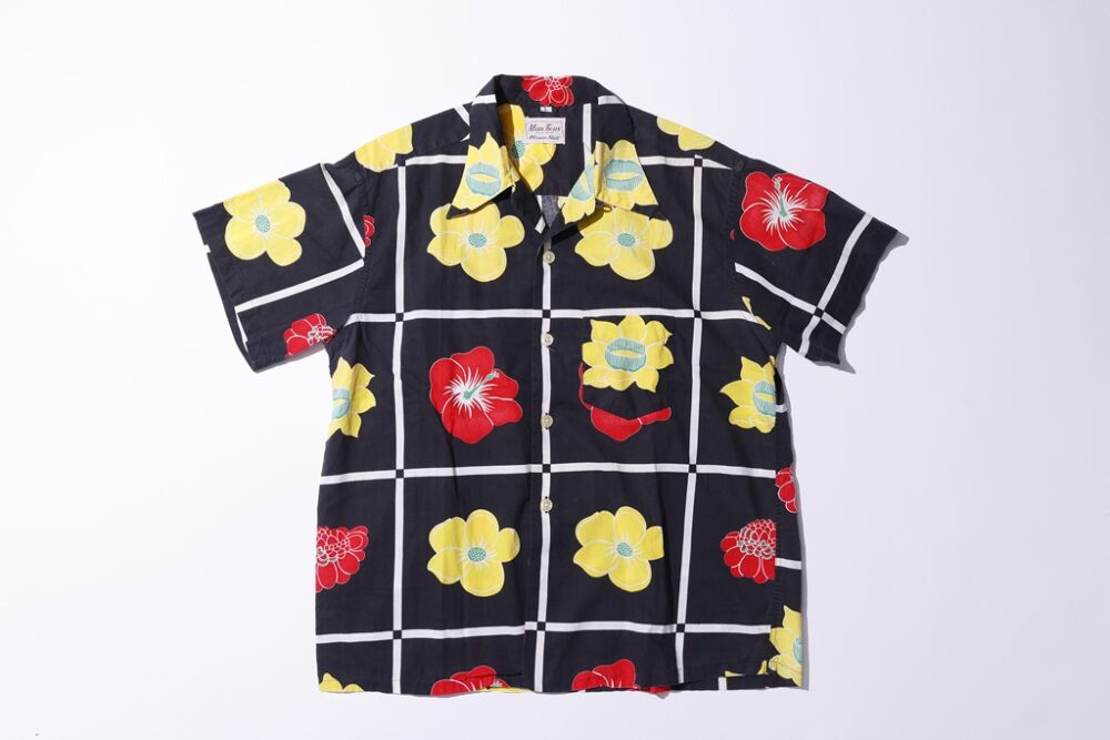 自分が負けちゃうくらいの激しいデザインのシャツが好きなこともあって、三田の54Brokeでこの柄のシャツを見かけたときに手に取ってしまった。いわゆるハワイアンシャツの王道的なデザインではないところだけでなく、いつものようにそのカラーリングの妙にやられたのは。