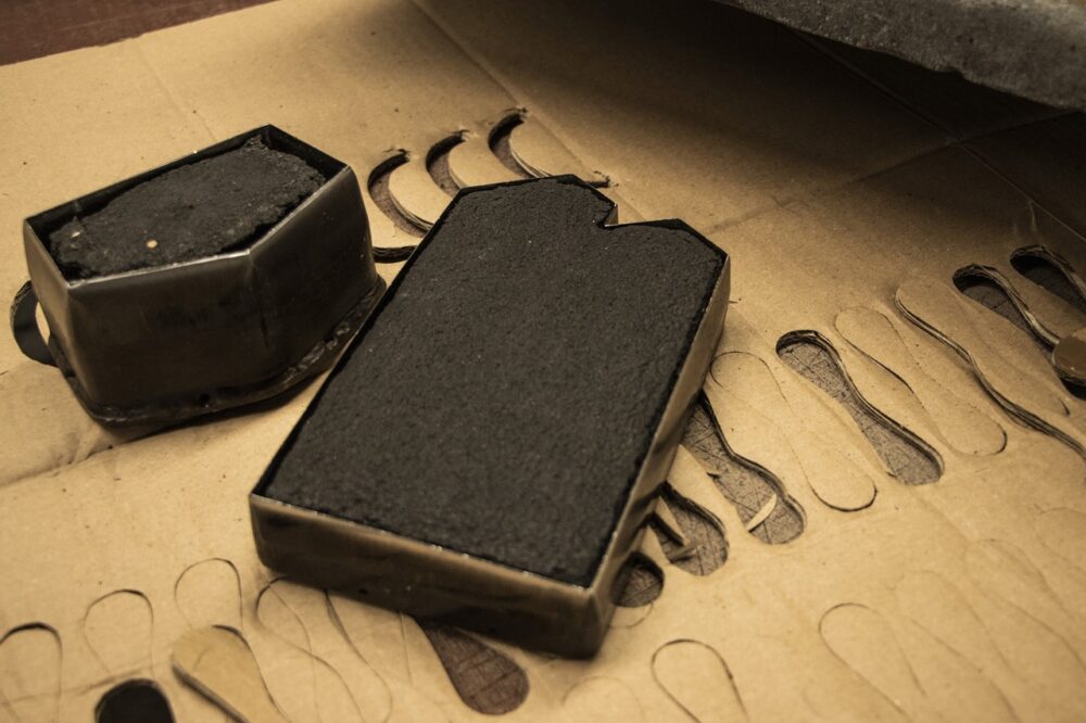 エポレットとポケットフラップの抜型。この抜型を革の上にセットし、プレス裁断機を使って圧力によってパーツを抜き出していく。