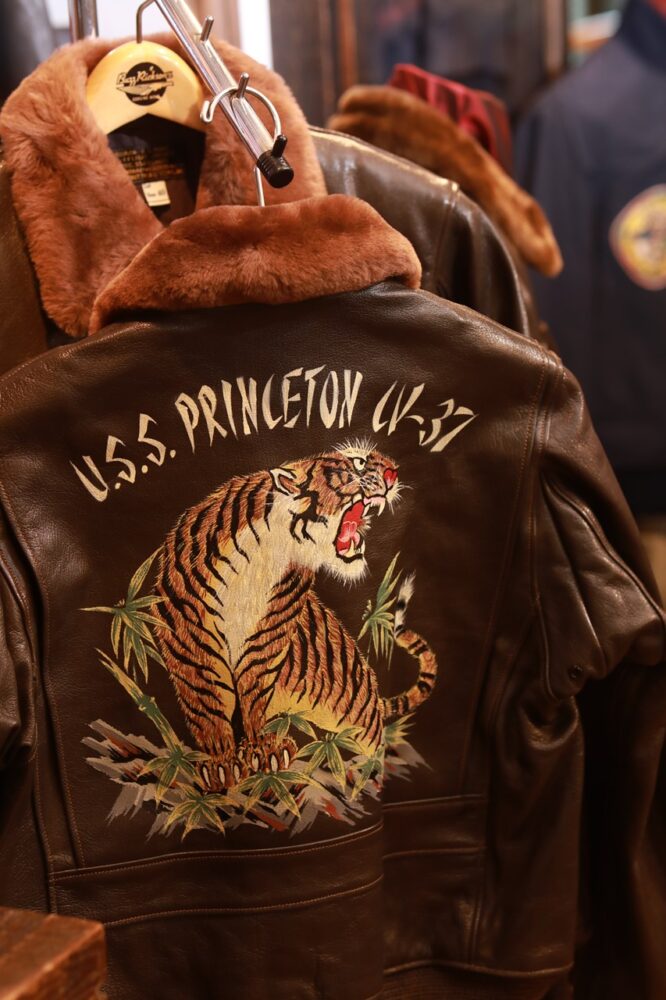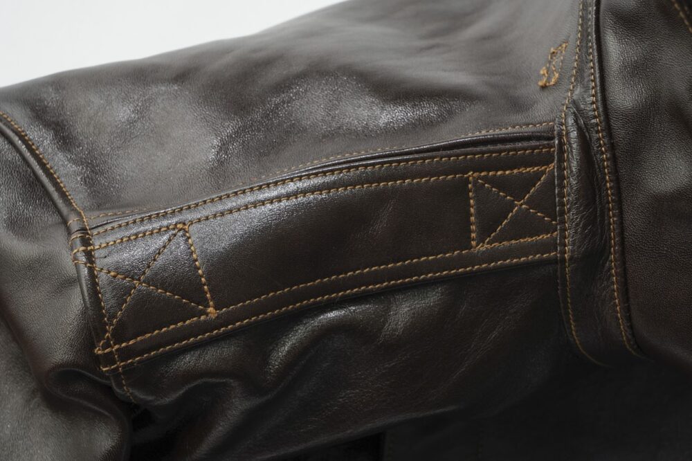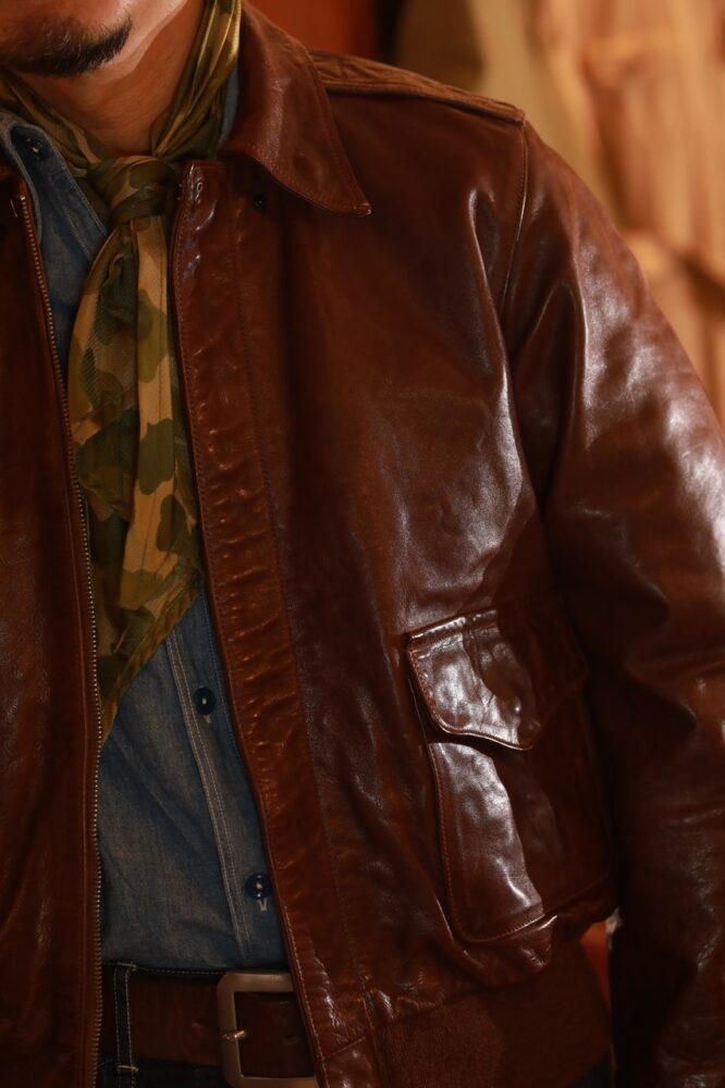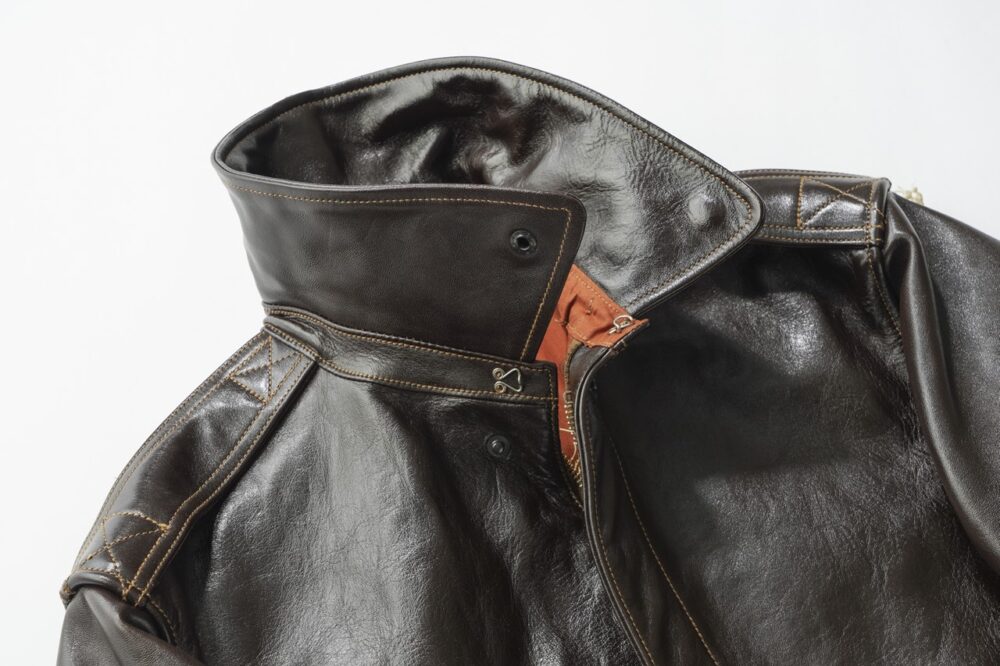 「A-2は見た目のシンプルさでしょうね。極限まで削ぎ落とされた美しいフォルムに着用し続けて浮き彫りとなる良質なレザーの表情。G-1はアクションプリーツやレーヨンライニングによる着心地の良さ。また、メインマテリアルに使用しているゴートスキンは小動物がゆえに繊維質が細かく、硬化しにくいのも特徴。海軍管轄であるため、潮風にあたりますし、ときには波飛沫を浴びて濡れてしまうことだってあったと思います。それらも含めてゴートスキンが使われていたのでしょう」