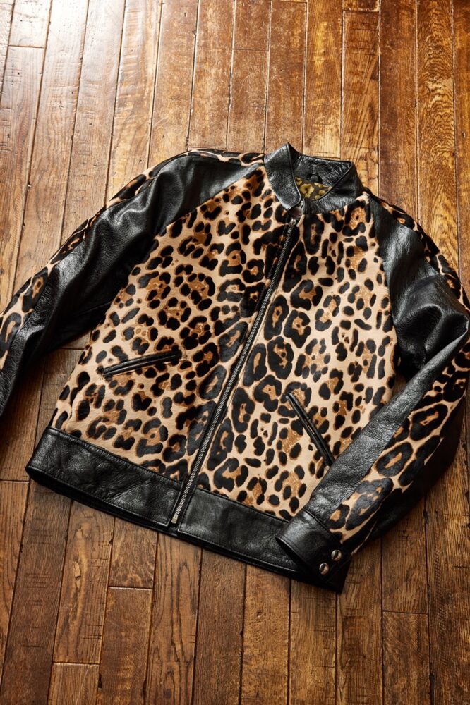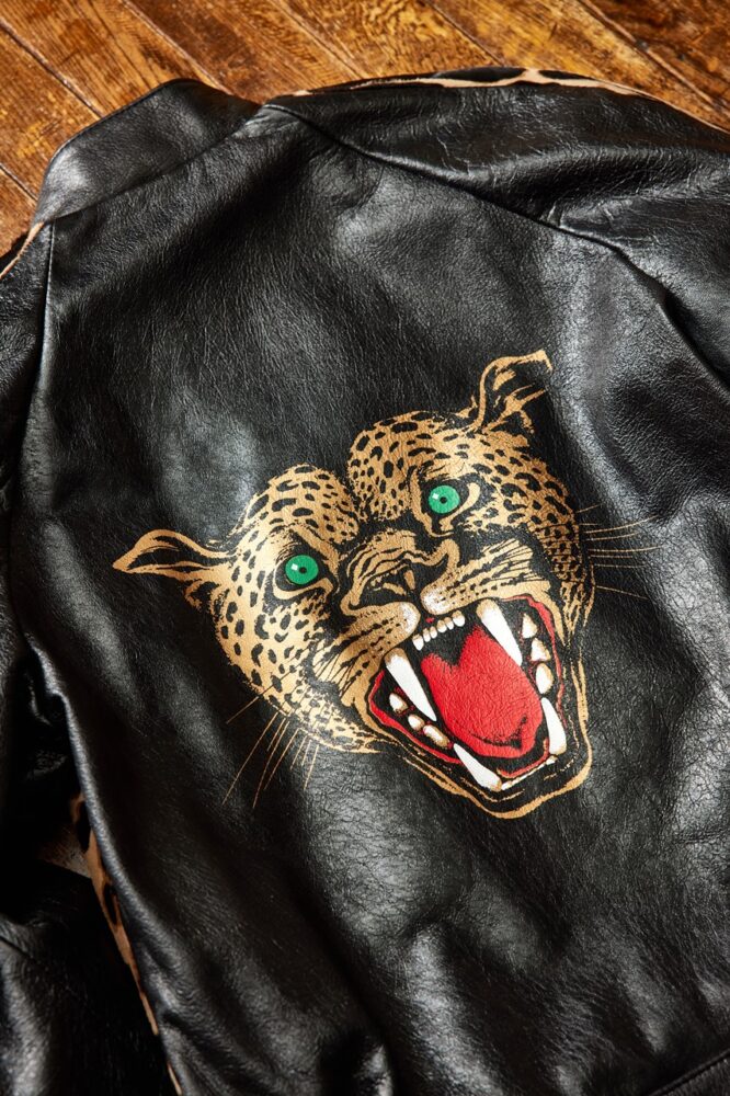 1973年に発表した IGGY & THE STOOGES『RAW POWER』内のブックレットにて、イギー・ポップが着用していたジャケットの復刻。当時と同じアーティストによって描かれたいまにも飛びかかってきそうなレオパードのリアルなグラフィックが印象的。当時の質感と似た光沢の革を使用している。