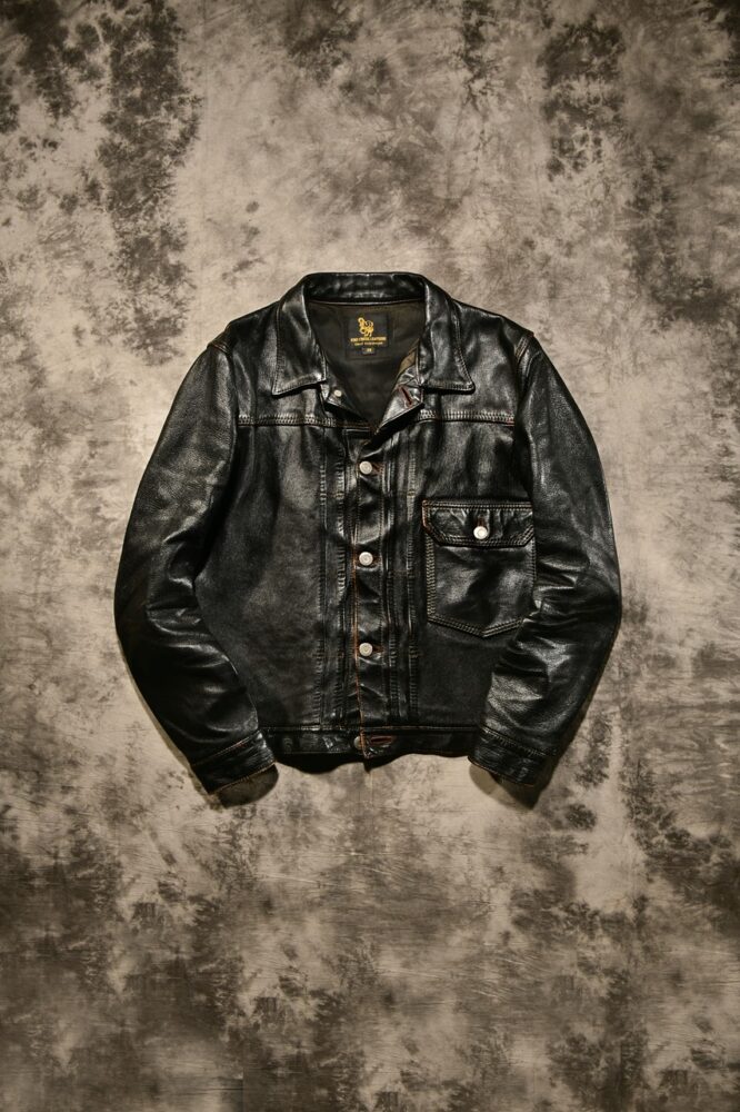 「ヴィンテージにもGジャンをモチーフにしたレザージャケットは存在しますが、フロントがスナップボタンに変更されていたりして、あくまで〝Gジャン風〞のモデルがほとんどです。僕は、往年の名モデルと言われるデニムジャケットを、敬意を込めてそのディテールまでをもレザーで再現したかったんです」