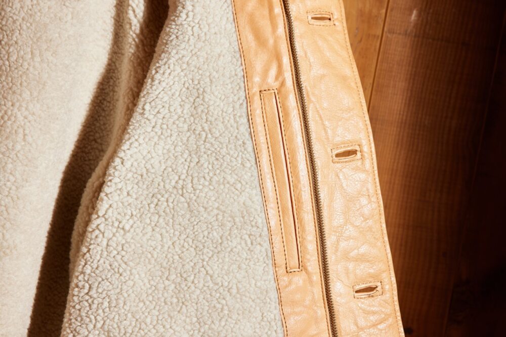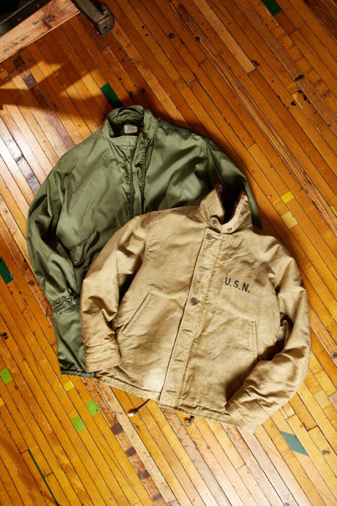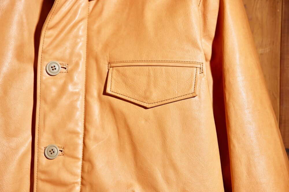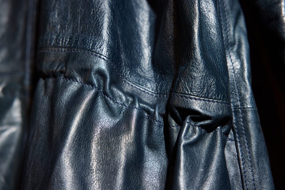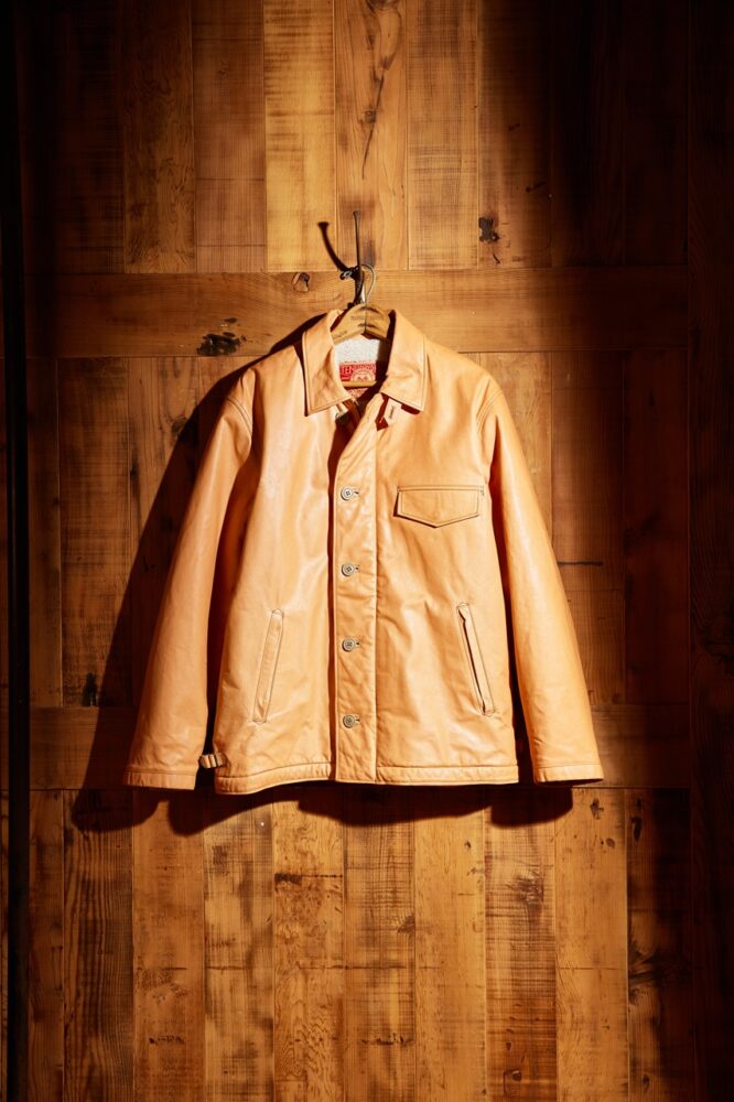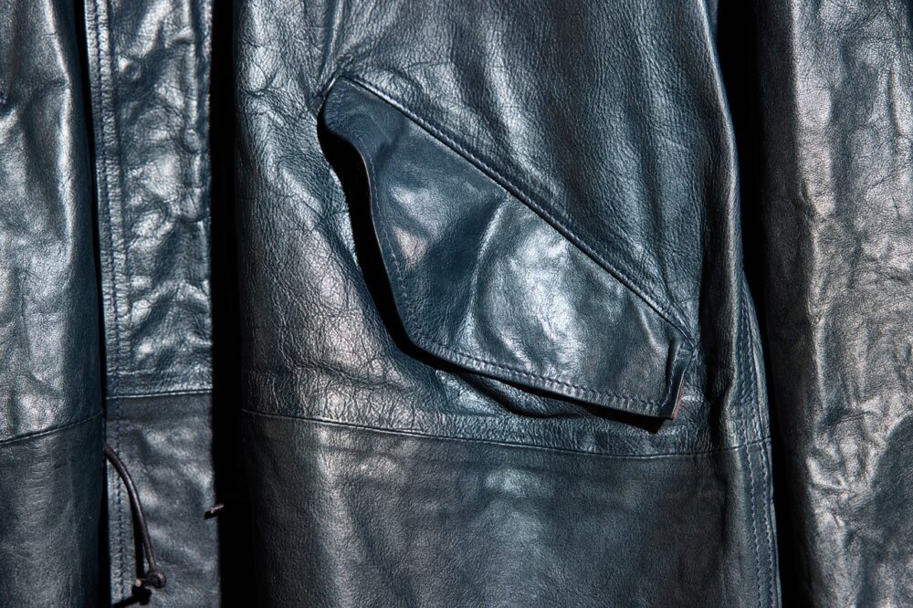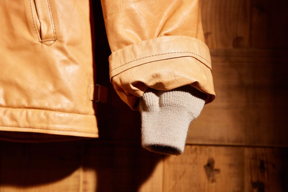 「ヴィンテージのA-2デッキ、M-65パーカの魅力とは、その〝クタリ感〞にあります。この雰囲気をレザーで再現するには、薄く漉いたオイルドキップが最適なんです。もちろん、ディテールはすべて踏襲しています。ヴィンテージ好きの方も、レザー好きの方も、必ず満足してもらえると思いますよ」