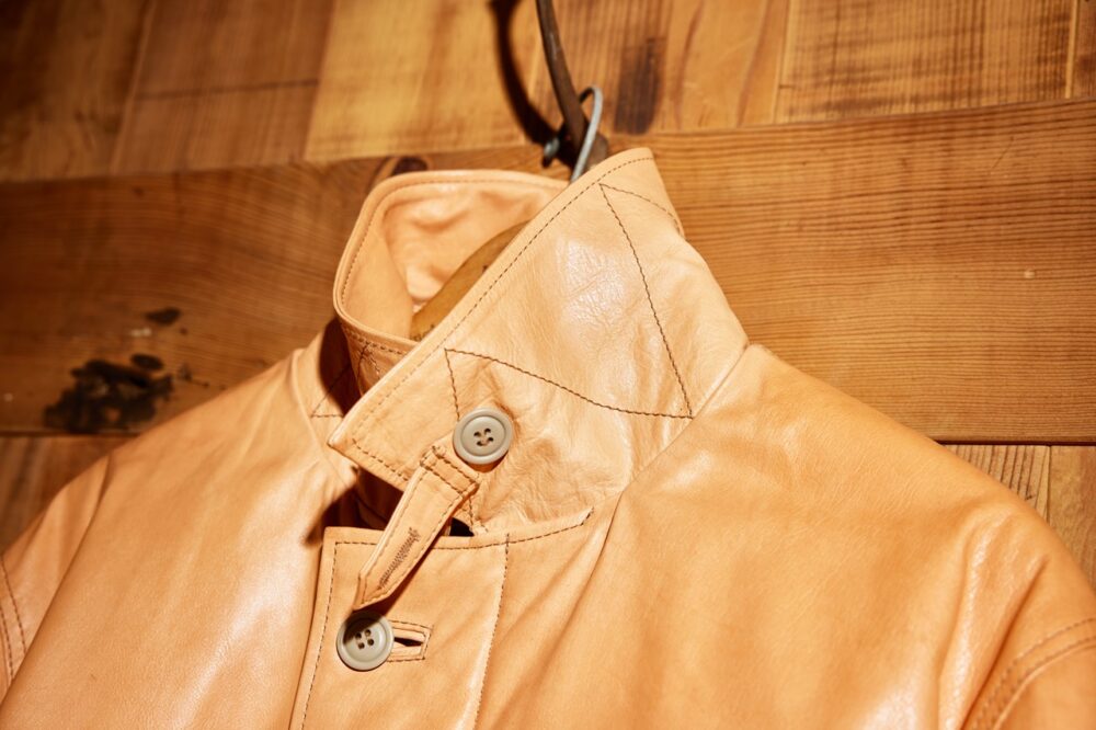 そもそも、レザーという素材は布帛と違って粘りがあり、手強い。張りがあるためにドレープもしない。レザーとは、「経年変化が楽しめる」「一生モノ」などともてはやされてはいるが、実はとんでもなく扱いにくい素材なのだ。