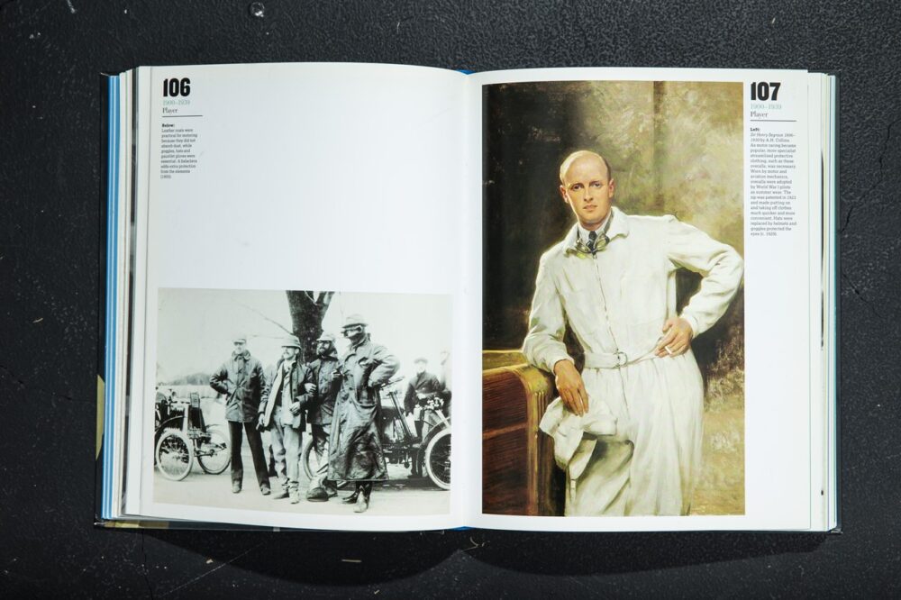 「この手のコートはフランスでは定番で、20世紀初頭に飛行服やカーコートとして着用していた写真が確認できます。その後はワークジャケットとしても活用され、公務員などにも支給されていました。写真で見る限り、コルビジェが着ていたのは、このタイプ。雑なラッカー塗装で、品質の高くないが、惹かれるものがあります。この雰囲気を再現しつつ、日本の高い技術と素材で再構築しました」