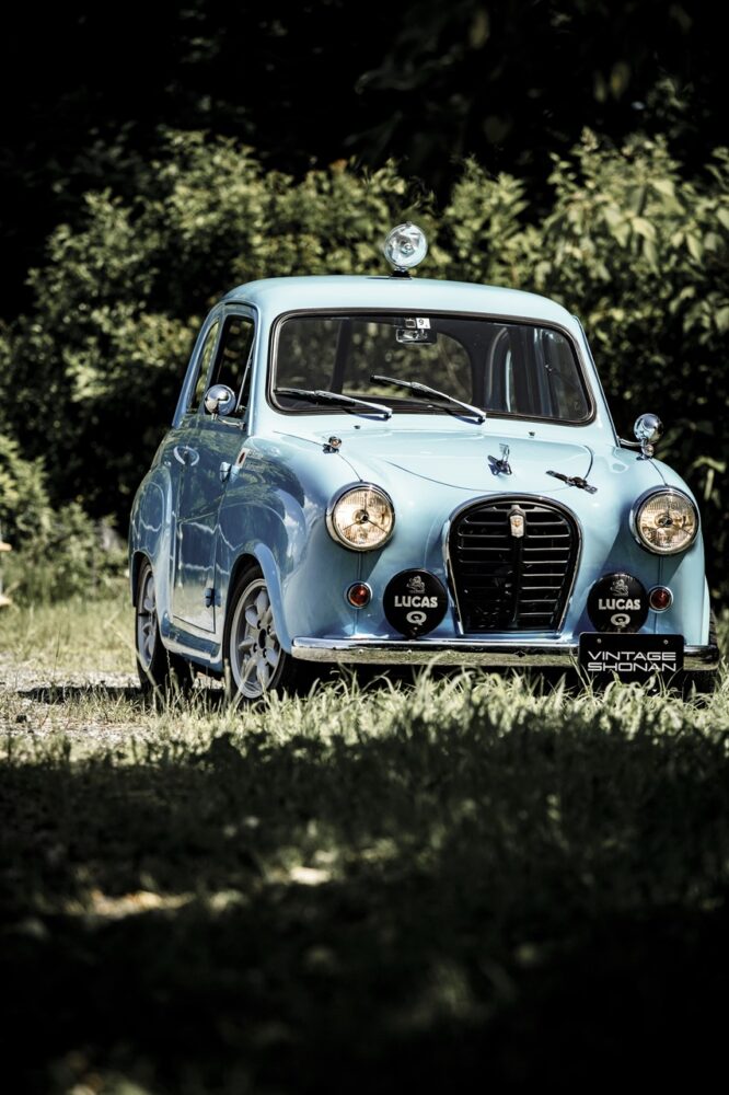 ぽってりとしたフォルムが可愛らしいA35は、1950年代をメインに大衆車として活躍。排気量は1000㏄で、ミニの先代と言われれば、なんとなく共通するデザインも理解できる。またレース仕様となっているのも、この個体の大きなポイントだ。本国の愛好家たちの間では、小排気量のこのクルマをベースにカスタムし、クラシックカーレースに参戦する粋な遊びをしているのだとか。
