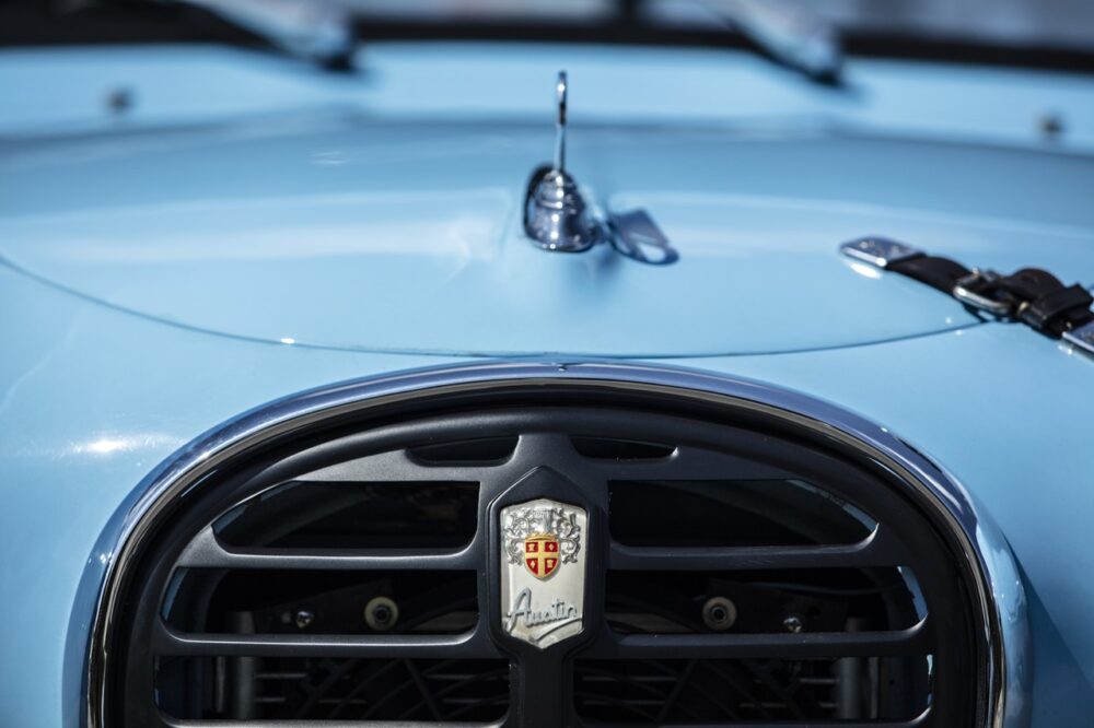 美しいアールを描いたフロントグリル中央には「Austin」エンブレムが堂々と鎮座する。