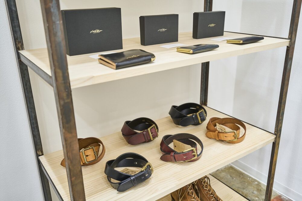 キャスパーやルーツエンジニア、コペンなどの定番から、新作ブーツもいち早く並び、ブーツファンには嬉しい限りだ。エイジングサンプルも展示されているので、購入の際の参考にもなるはず。もちろん、同社が展開するTOKYO SANDALやKatsuya Tokunagaの革小物も扱っている。