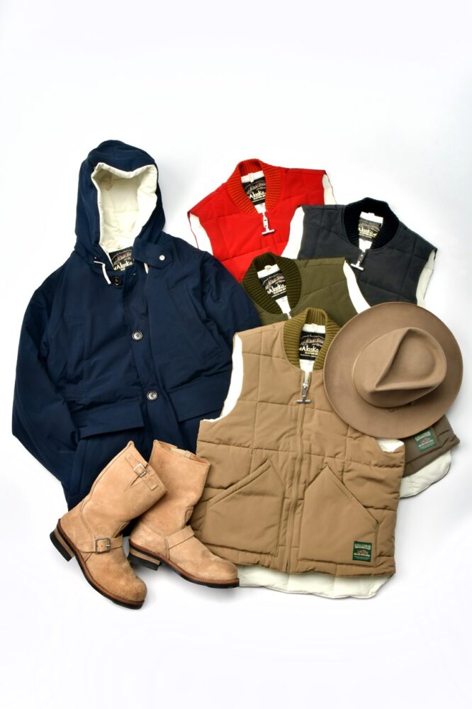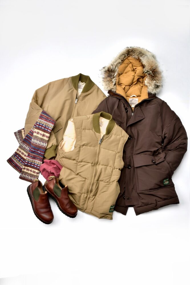 GOOSE DOWN MADE IN U.S.A. “ARCTIC” WORK&HUNTING COAT(右)/GOOSE DOWN MADE IN U.S.A. “VIKING VEST”(中)/GOOSE DOWN MADE IN U.S.A. “WINTER KING” JACKET(左)
