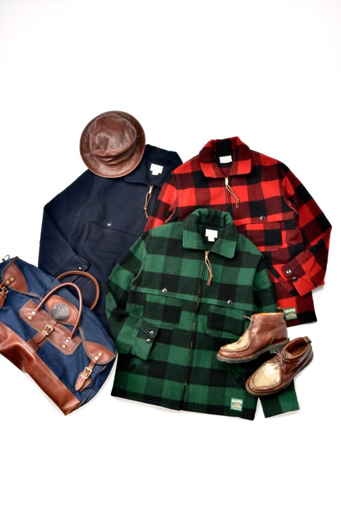 (左)1950年代に作られたバッファロープレイドのウール素材を使ったスタッグジャケット。当時WOOLRICHがOEM生産していたヴィンテージをもとに忠実に再現している。Lot No.AS15215/ ¥46,200_