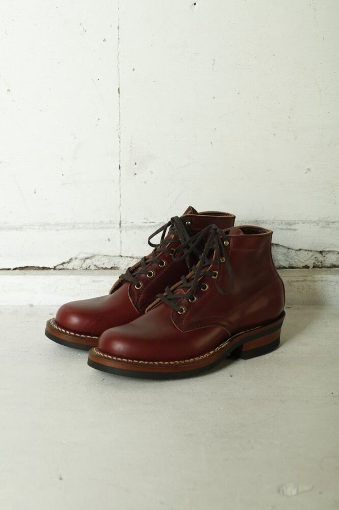 ワークブーツながら、ドレスシューズのような上品な雰囲気から圧倒的支持を集めるセミドレス。履き込むほどに味わい深くなるクロームエクセルレザーのバーガンディを採用。