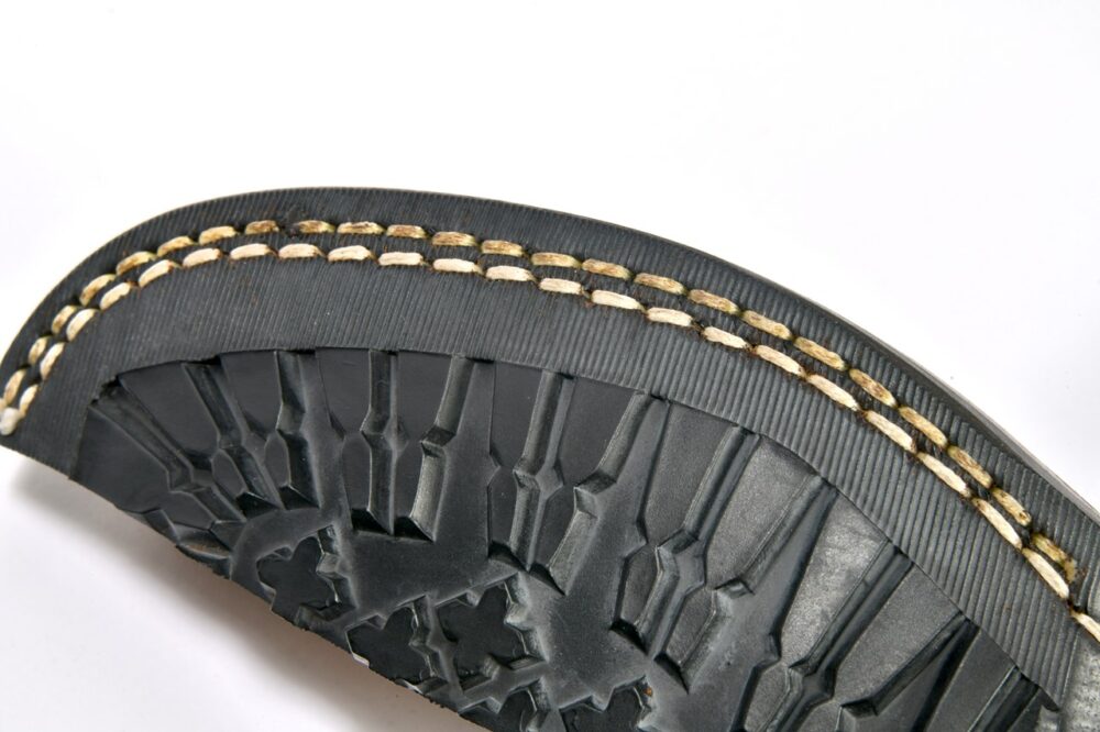 ソールとミッドソール、そしてアッパーまで、まとめて縫われるため、アウトソールにはステッチ2本が剥き出し。履くごとにダメージはあるが、簡単には解れない。