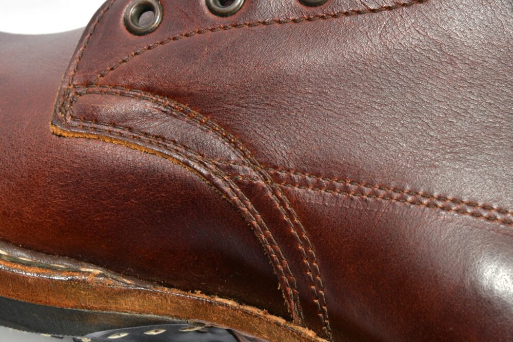 細かな運針によるアッパーの縫製は丁寧に作られていることの象徴。特にステッチが交差する部分やアールを描くステッチングなど熟練した職人ならではの技術が問われる。
