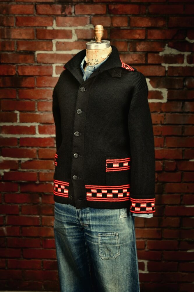 ブラッドレーは、20世紀前半のアメリカで最高品質のニットウエアを製造していた。そのセーターは、ディテールや色使いが素晴らしい。この襟付きカーディガンはその典型を復刻。