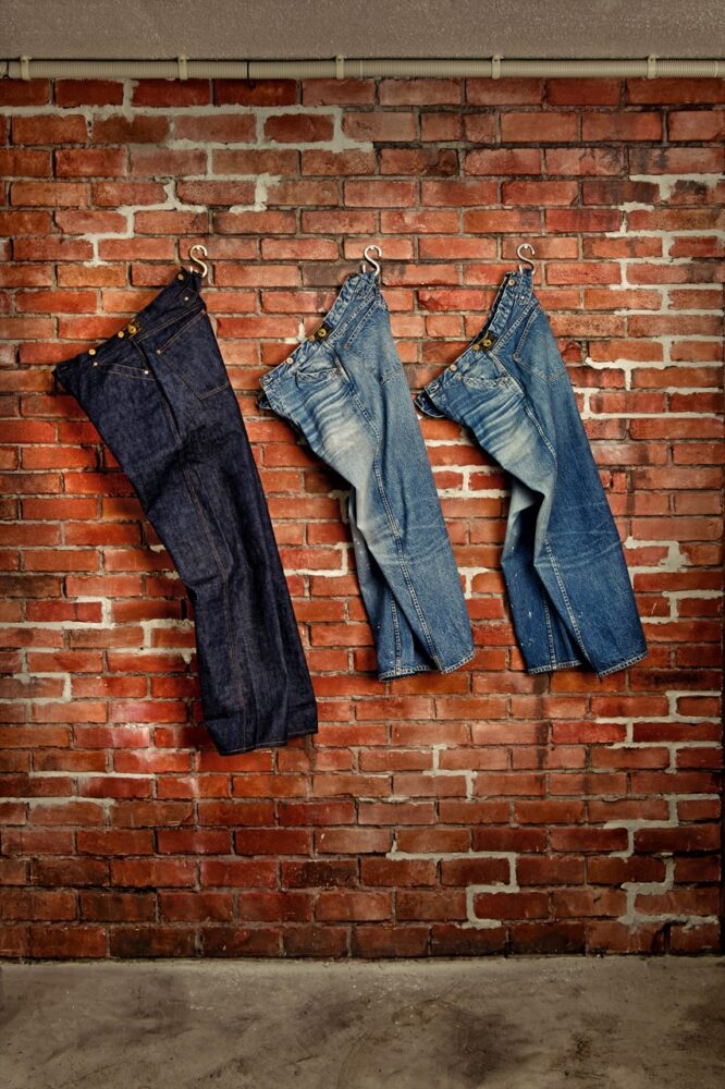 腰の黒と金のラベルは、1904年のセントルイス万国博覧会でSweet-Orr and Co.が製造業の優秀賞として大賞を受賞したことを記念したもの。ヒップのラベルのやや無造作な配置はジョンのお気に入り。幅広のストレートレッグが特徴。バックポケットの角度を変えることで手を入れやすくするなど、機能面を重視したデザインが選択されたヴィンテージを再現している。写真左のオリジナルは14.5oz.デニム、ユーズドウォッシュモデルは12oz.デニムと生地を使い分けている。