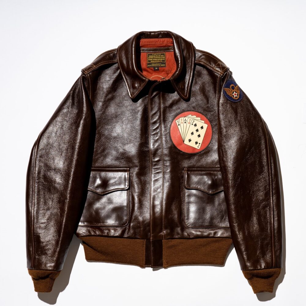 1941年12月に開設されたCBI戦域とは、チャイナ(中国)、ビルマ(現ミャンマー)、インドの頭文字から名付けられている。このA-2はそのCBI戦域にてインドからヒマラヤ山脈を超えて中国に向かう飛行ルートを飛んで物資補給を担った「エア・トランスポート・コマンド(ATC)」のパイロットが着用していたモデル。装着される部隊章の殆どはローカルメイド(現地製作)であり、革を細かく切り刻みパッチを手作業で作っていた。¥206,800_