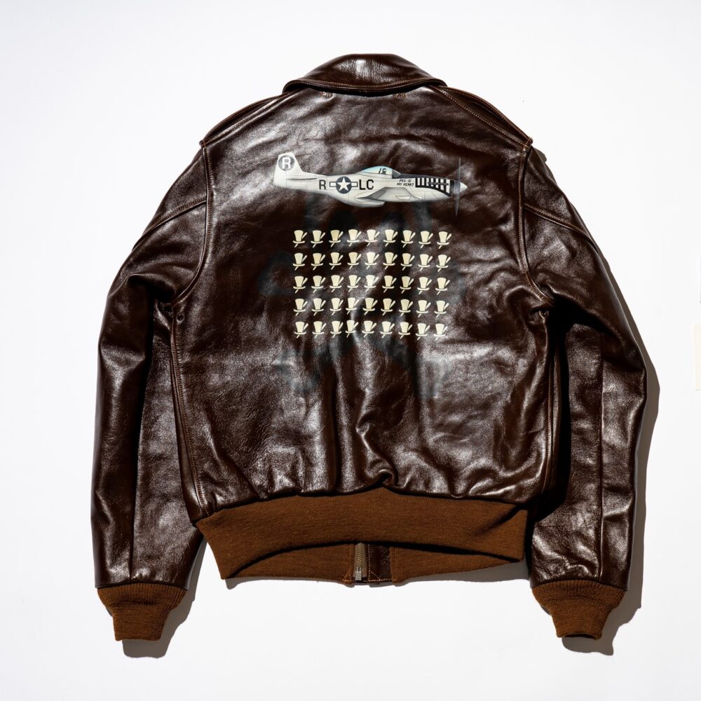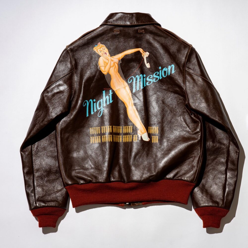 ブラックパンサーの愛称を持つ第460爆撃大隊は、第760、761、762、763の飛行隊から編成され、第15空軍の重爆撃隊の組織として1943年5月に創隊された。爆撃機B-24“リベレーター”で主にニューメキシコ州とユタ州で訓練を積み、1943年8月には地中海戦域の配備指令により海外任務に就いた。このA-2のペイントカスタムは、爆撃機が胸に描かれた当時としても珍しい1着。背中に描かれる「ナイトミッション」とは、夜の出撃任務と彼女との夜間デートを掛けた粋な言葉となっている。¥228,800_