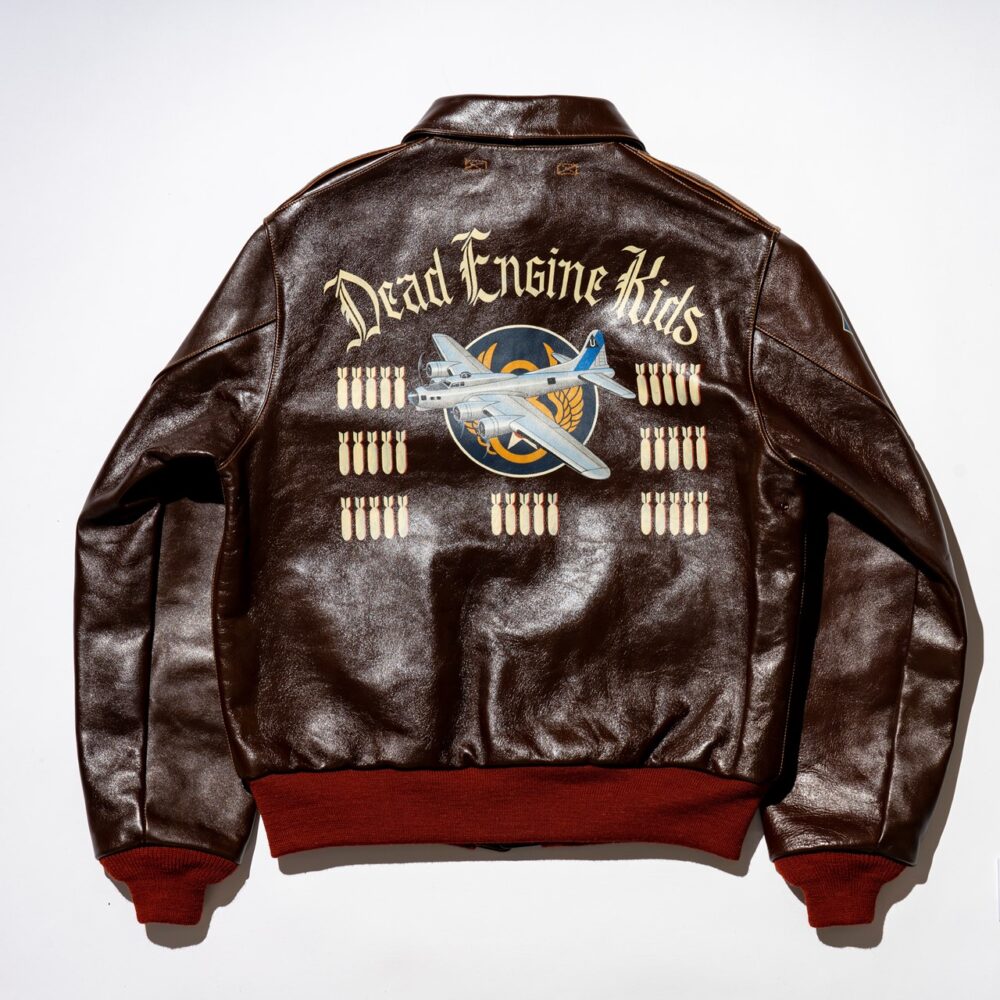 BUZZ RICKSON’Sの2022年秋冬コレクションでは、そんな当時のパイロットたちによるカスタムが施されたA-2をラインナップ。革を細かく切り刻んで作られたローカルメイドパッチやハンドペイントの部隊章、自身が搭乗する愛機や出撃回数を描いたバックペイントなど、強烈な存在感を放つ意匠に注目したい。
