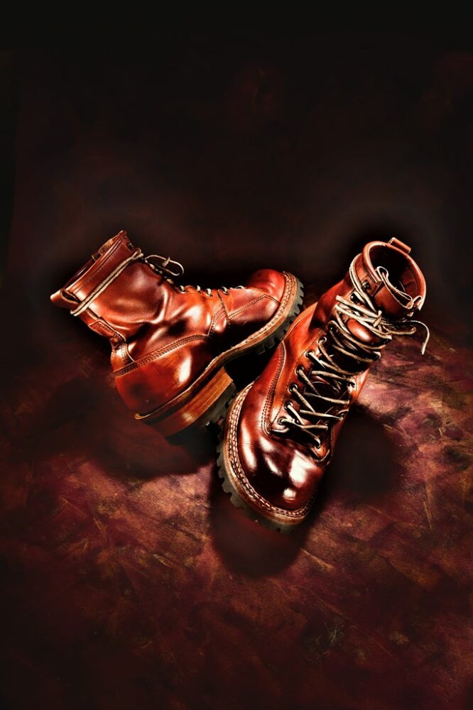 WHITE’S BOOTSは20足以上履き、いまも愛用しているんですが、その中でお気に入りの1足といえば、ウィケット&クレイグ社のオイルドラティーゴを使ったスモークジャンパーです。重厚な革やサイドパッチなど、キャッチーな見た目以外にもヒールの積み革を1枚追加し、さらにハイトを7インチでオーダー。脱ぎ履きのしやすさとカッコ良さのバランスが取れたブーツに仕上がったんじゃないかなと自負しています。いわゆるWHITE’S BOOTSの良いところ「全部乗せ」みたいなブーツにしたのですが、片足、1.6キロと、持っているブーツの中で最重量級のブーツになってしまいました。そんなブーツに負けないようジムで身体を鍛えております。