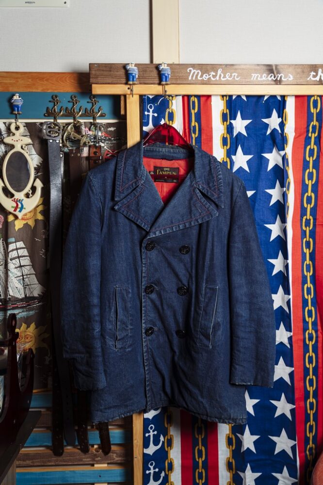 1960~1970年代頃に作られたCAMPUSのデニムピーコート。ライニングに配された赤のキルティングがインディゴとマッチする。