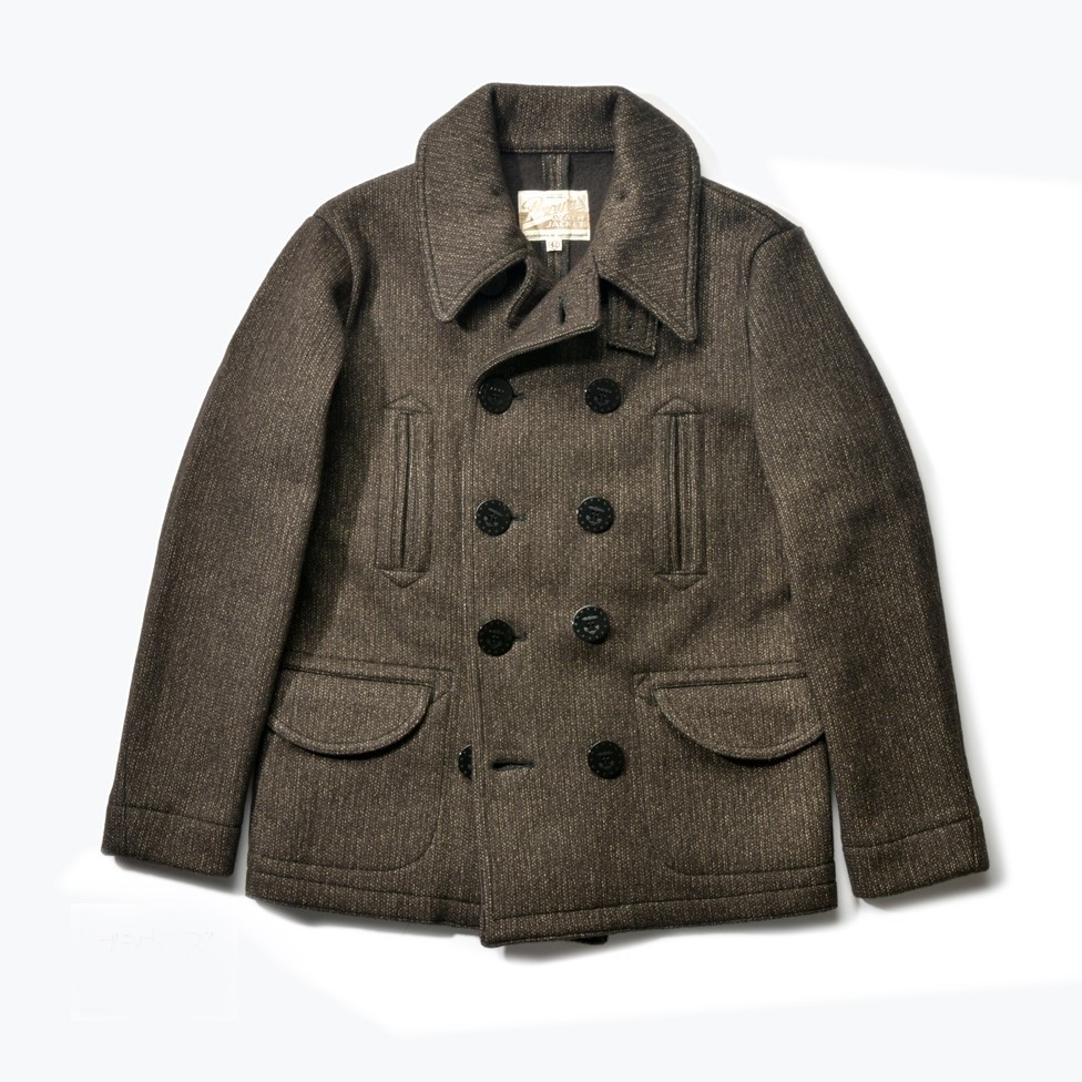 ごま塩の愛称で知られるビーチクロスを使ったピーコート。13スターの10ボタン、フロント4つポケットヴィンテージスタイル。¥88,000_(FULLCOUNT TOKYO SHOP Tel.03-6804-6541)