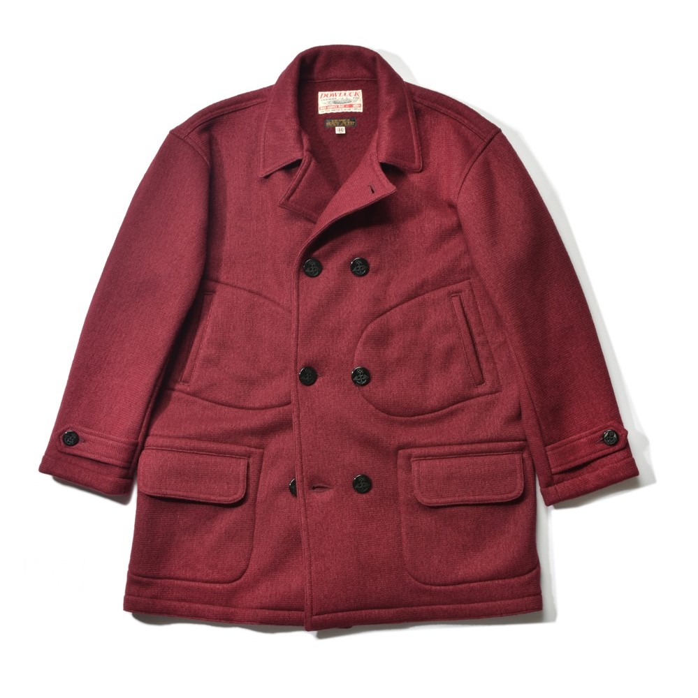 DOWRUCK別注のピーコート。アイビーカラーであるエンジのボディがクラシカルながらも新鮮。シルエットはゆったりめ。価格未定(琵琶湖平安樓 Tel.077-594-1901)