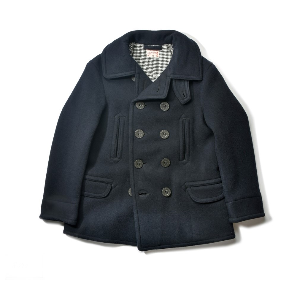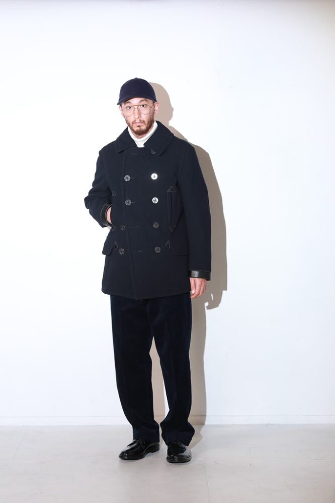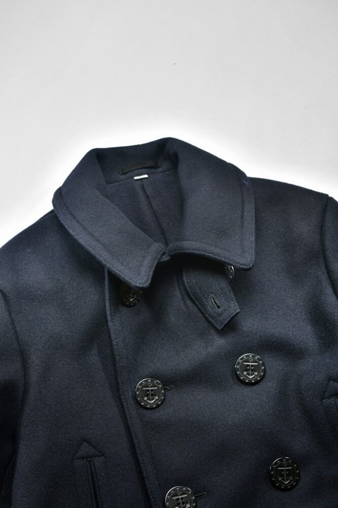 ダッフルコートと双璧をなすウールアウターの代表格といえばピーコートだ。縮絨ウールの肉厚なメルトンをメインマテリアルにダブルブレステッドでフロントボタンは8〜10個前後が装着されたヘビーアウター。このピーコートも海軍で採用されたものだが、18世紀にはすでに原型と言えるコートが存在していたとの話も耳にする。